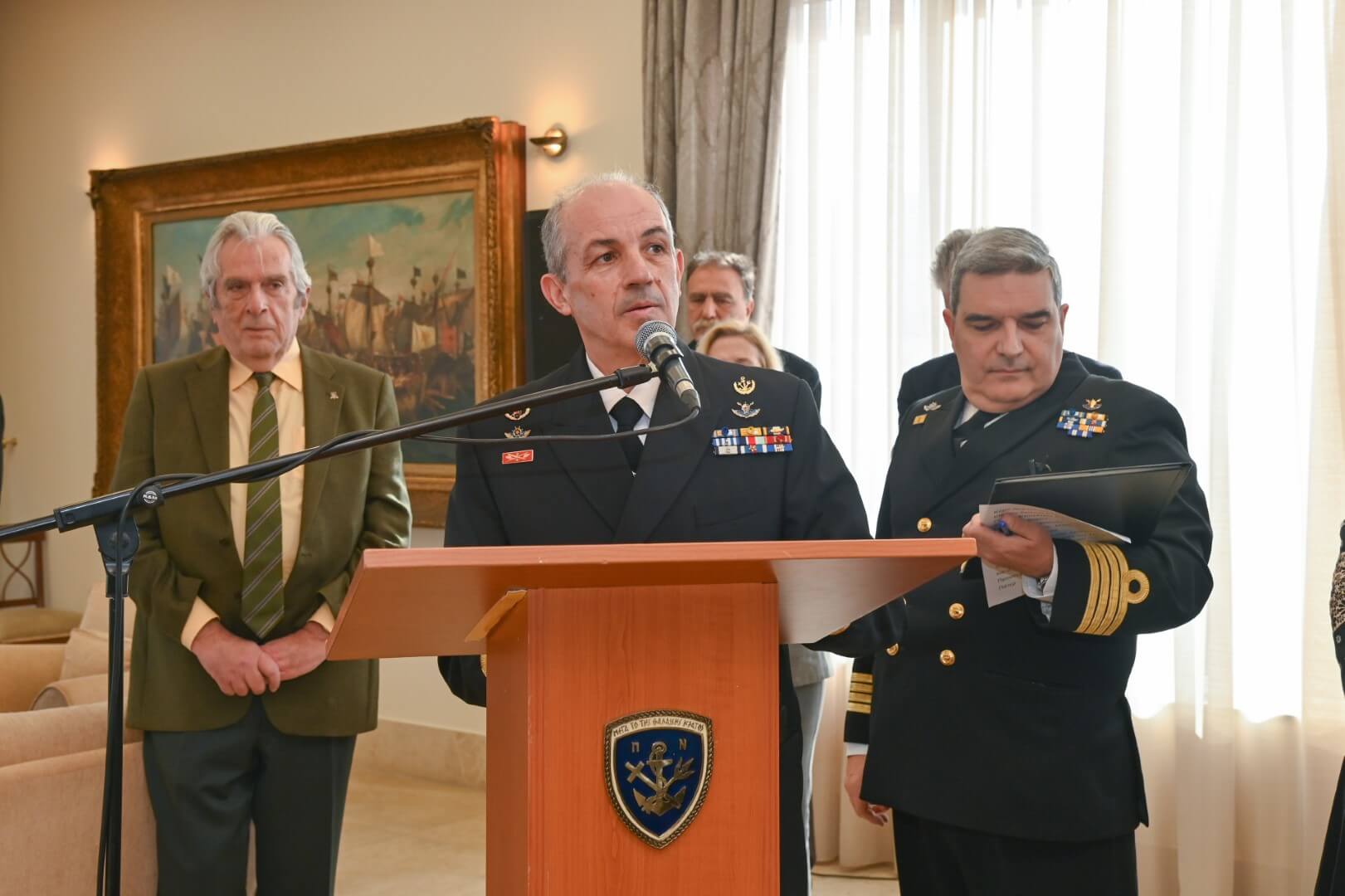 Στην κοπή της πίτας παρέστησαν ο Αρχηγός ΓΕΣ Αντιστράτηγος Άγγελος Χουδελούδης, ο Υπαρχηγός ΓΕΑ Υποπτέραρχος (Ι) Αντώνιος Πανίδης ως εκπρόσωπος του Αρχηγού ΓΕΑ, μέλη του Ανώτατου Ναυτικού Συμβουλίου (ΑΝΣ) καθώς και στρατιωτικό και πολιτικό προσωπικό του Πολεμικού Ναυτικού.