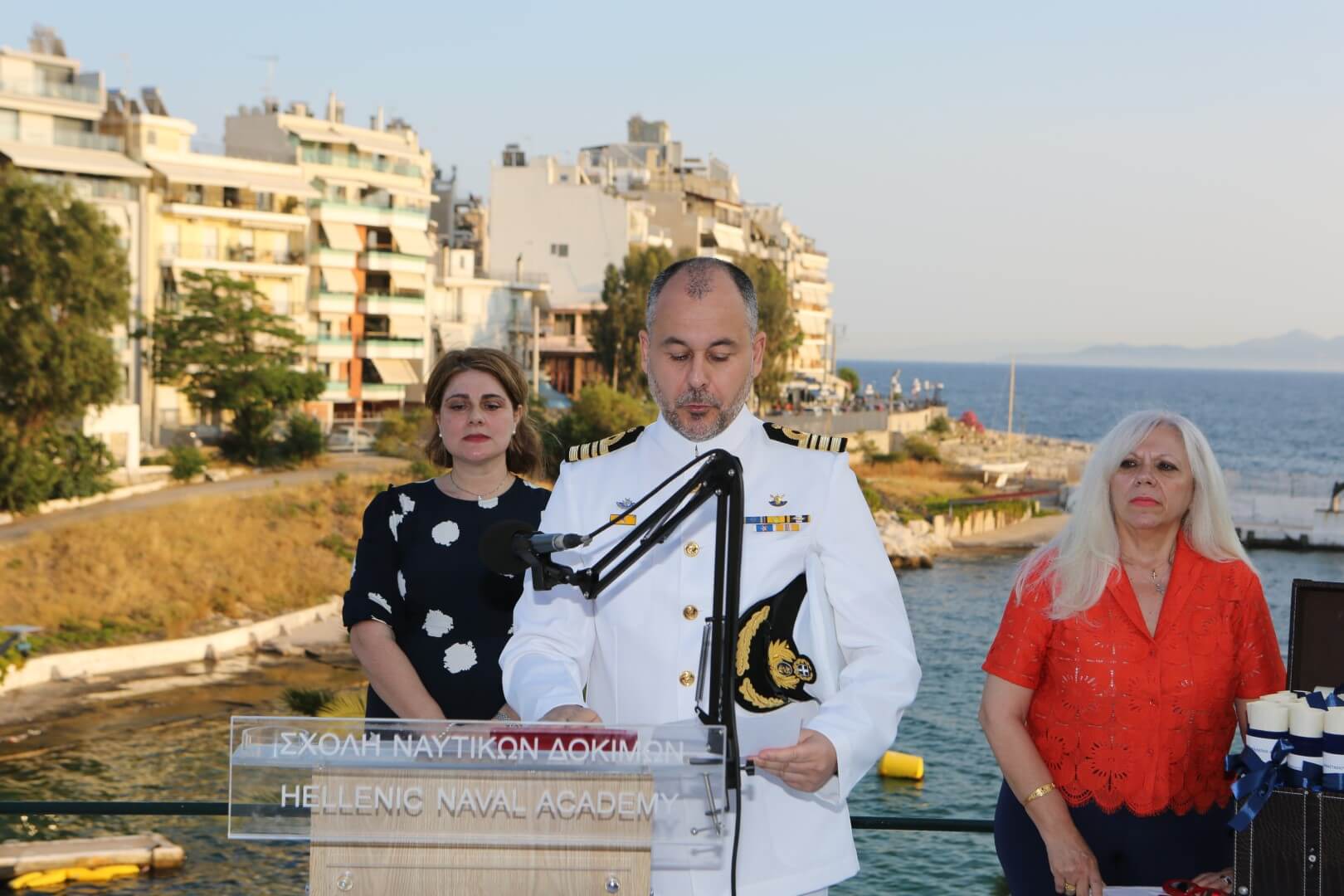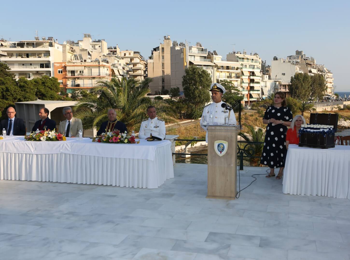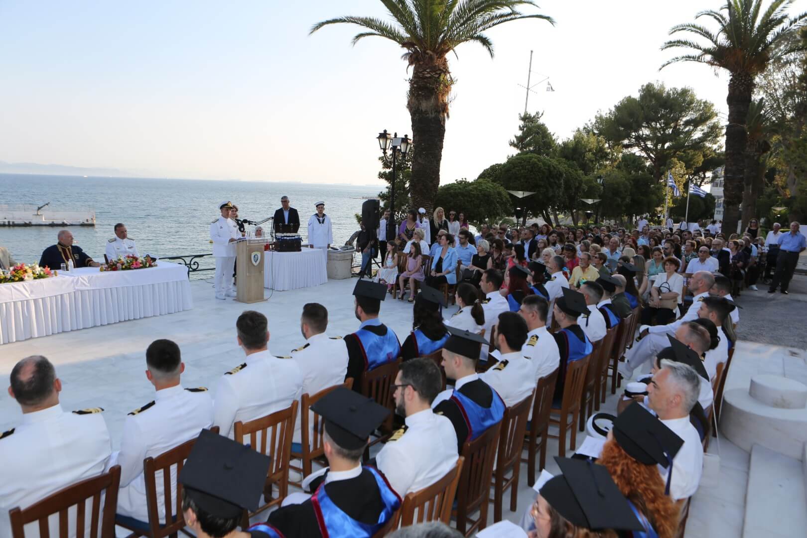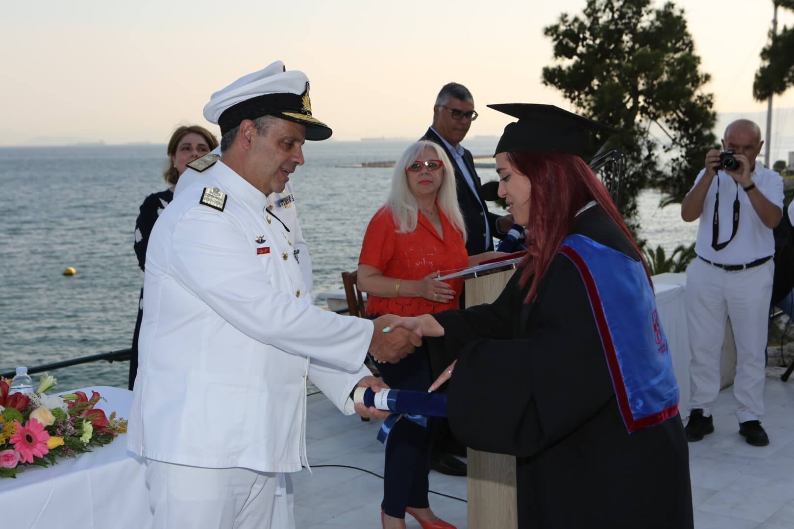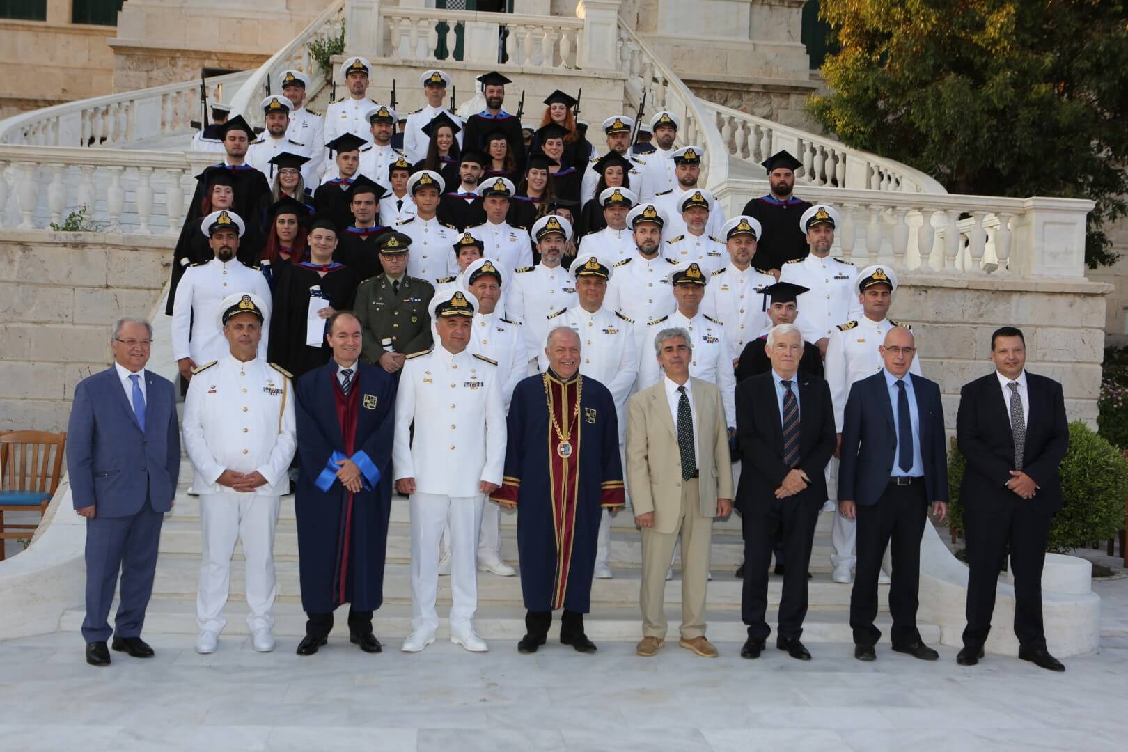 Στην τελετή παρέστησαν ο Υπαρχηγός ΓΕΝ Υποναύαρχος Κωνσταντίνος Βλάχος ΠΝ, ως εκπρόσωπος του Αρχηγού ΓΕΝ Αντιναυάρχου Ιωάννη Δρυμούση ΠΝ, Επίτιμοι Αρχηγοί ΓΕΝ, ο πρόεδρος του Ιδρύματος «Αικατερίνη Λασκαρίδη» Υποναύαρχος ε.τ. Πάνος Λασκαρίδης, ο Πρύτανης του Πανεπιστημίου Πειραιά (ΠΑΠΕΙ) κ. Μ. Σφακιανάκης, ο Κοσμήτορας της ΣΝΔ κ. Ν. Μελανίτης, ο Πρόεδρος του Τμήματος Ναυτιλιακών Σπουδών του ΠΑΠΕΙ κ. Ι Θεοτοκάς, μέλη Διδακτικού Ερευνητικού Προσωπικού της ΣΝΔ, απόστρατοι Αξιωματικοί των Ενόπλων Δυνάμεων, μέλη της ευρύτερης Ακαδημαϊκής, Ναυτικής και Ναυτιλιακής κοινότητας, μέλη της Τοπικής Αυτοδιοίκησης, καθώς συγγενείς και φίλοι των αποφοιτησάντων.
