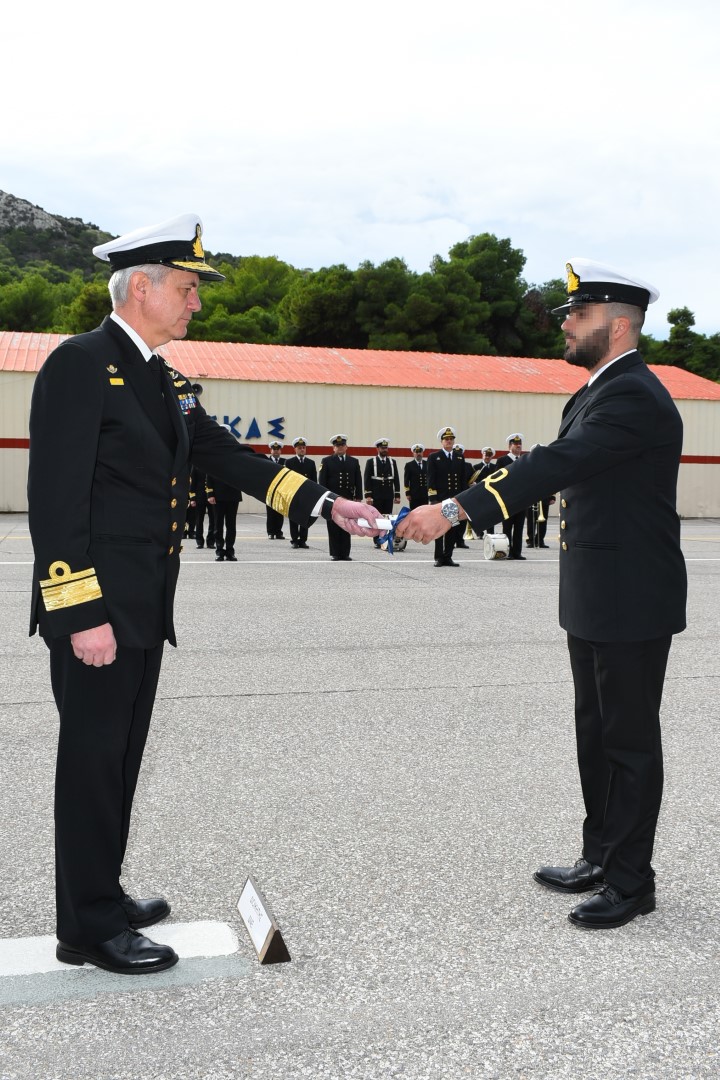 Τα πτυχία στους ορκισθέντες Σημαιοφόρους επέδωσε ο διοικητής της διοίκησης Ναυτικής Εκπαίδευσης (Δ/ΔΝΕ) υποναύααρχος Πολυχρόνης Κουλούρης.