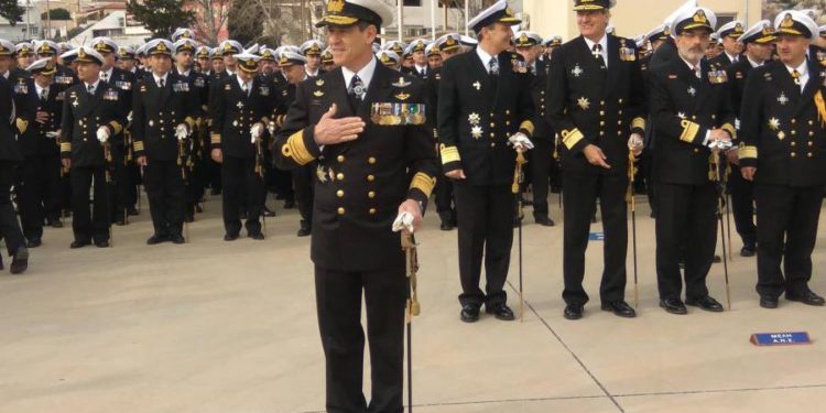 Με «χτυπήματα» βατραχανθρώπου παρέδωσε τα ηνία του Στόλου στον νέο Αρχηγό, Αντιναύαρχο Στέλιο Πετράκη, ο απερχόμενος Στόλαρχος Ναύαρχος Ιωάννης Παυλόπουλος.