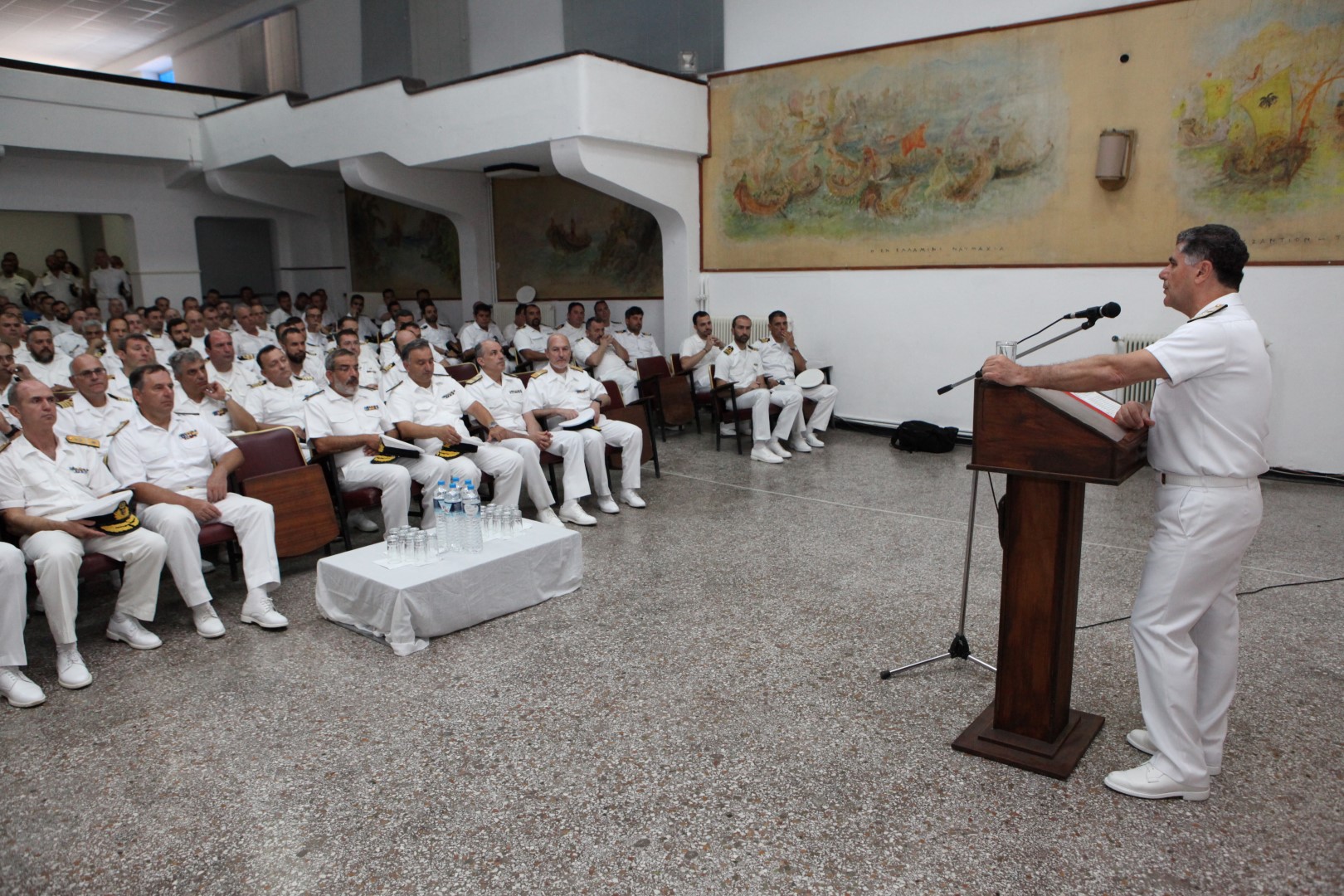 Κατά τη διάρκεια της επίσκεψής του και στο πλαίσιο της συνέχισης των προσωπικών επαφών του με στελέχη του Πολεμικού Ναυτικού, ο ΑΓΕΝ εκφώνησε ομιλία στο προσωπικό του Πολεμικού Ναυτικού που υπηρετεί στο Ναύσταθμο.