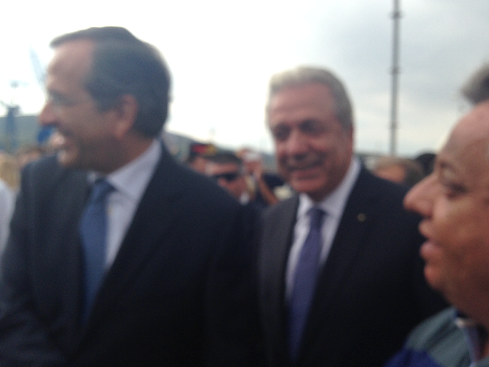 Αβραμόπουλος κάτι λέει στον Σαμαρά. Ίσως για τις αντιδράσεις που προκάλεσε η απόστευτη δήλωση του δεύτερου για την συμφωνία Βενιζέλου για τα υποβρύχια που τωρα την θεωρεί καλή! Τα όσα είπε ο Σαμαράς αποτελούν την είδηση της χθεσινής μέρας!