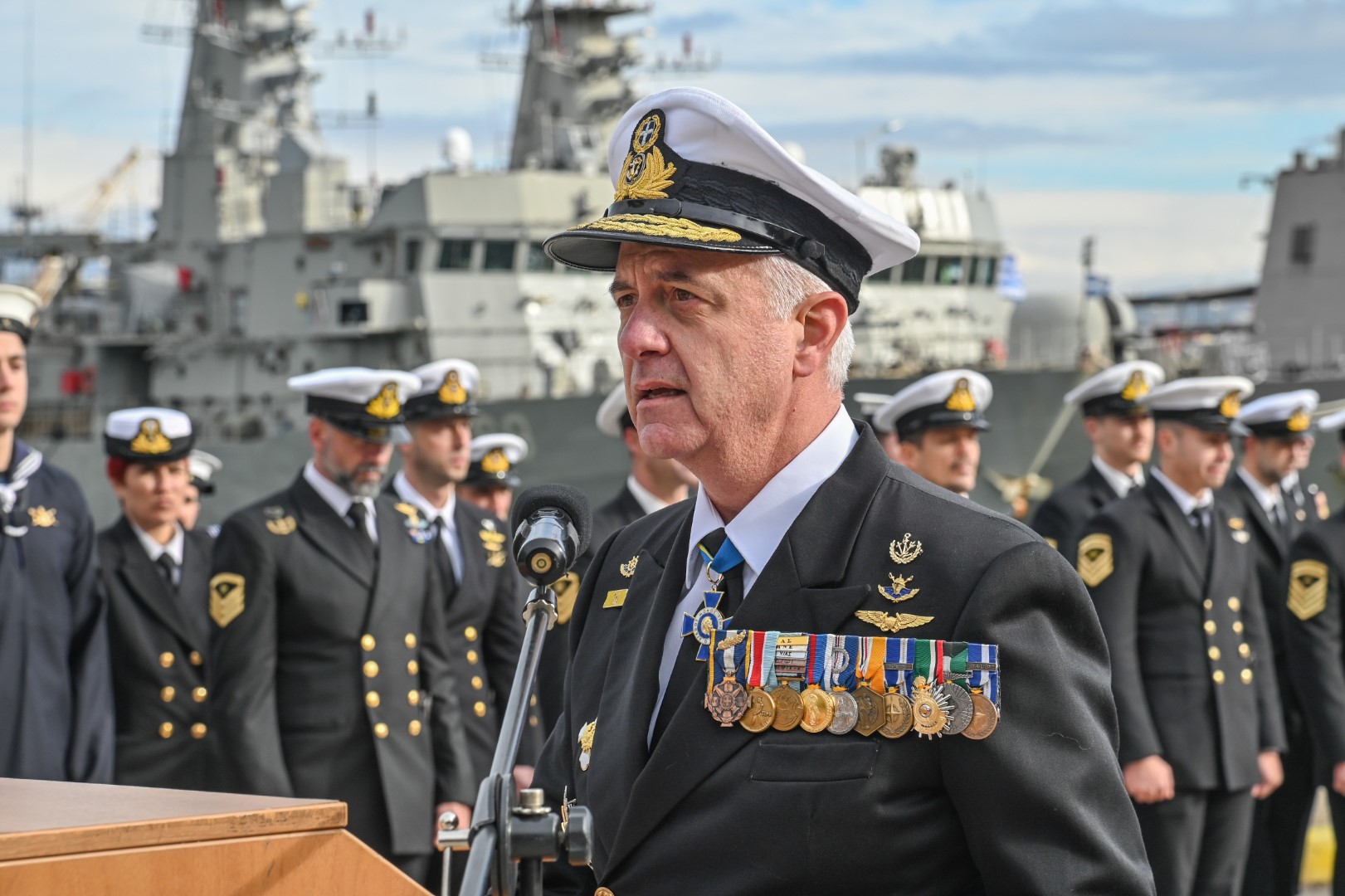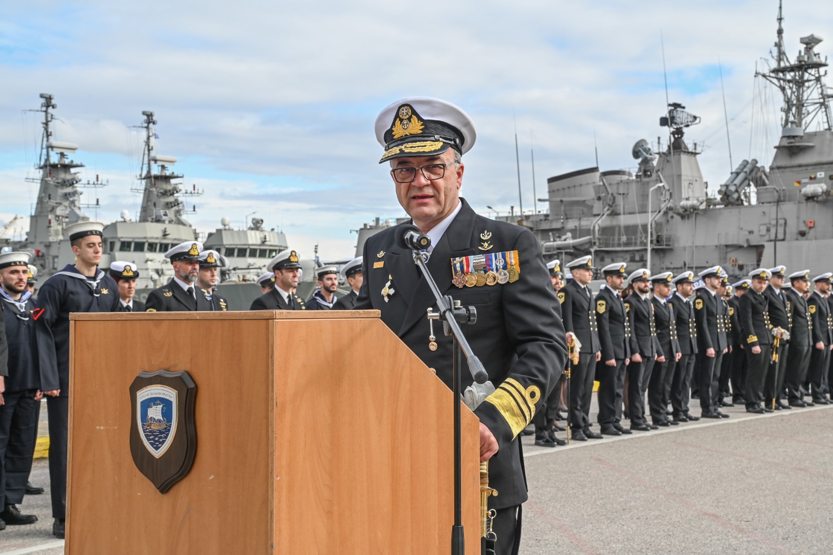 Η τελετή παράδοσης – παραλαβής καθηκόντων Αρχηγού Στόλου (ΑΣ), από τον αντιναύαρχο Πολυχρόνη Κουλούρη στον αντιναύαρχο Χρήστο Σασιάκο, πραγματοποιηθηκε χθες, Πέμπτη 16 Ιανουαρίου 2025, στον ναύσταθμο Σαλαμίνας, παρουσία του αρχηγού ΓΕΝ, αντιναυάρχου Δημητρίου-Ελευθερίου Κατάρα, εκπροσωπώντας και τον αρχηγό ΓΕΕΘΑ, στρατηγό Δημήτριο Χούπη.