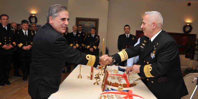 Ο νυν και ο επόμενος; Η φωτογραφία είναι από την κοπή πίτας του ΓΕΝ. Ο φωτογραφικός φακός του Νίκου Παναγιωτόπουλου , “έπιασε” τη χειραψία των Αρχηγών ΓΕΝ και Στόλου. Με δεδομένο ότι οι κρίσεις πλησιάζουν Αποστολάκης και Λίτσας θα είναι εκ των πρωταγωνιστών.