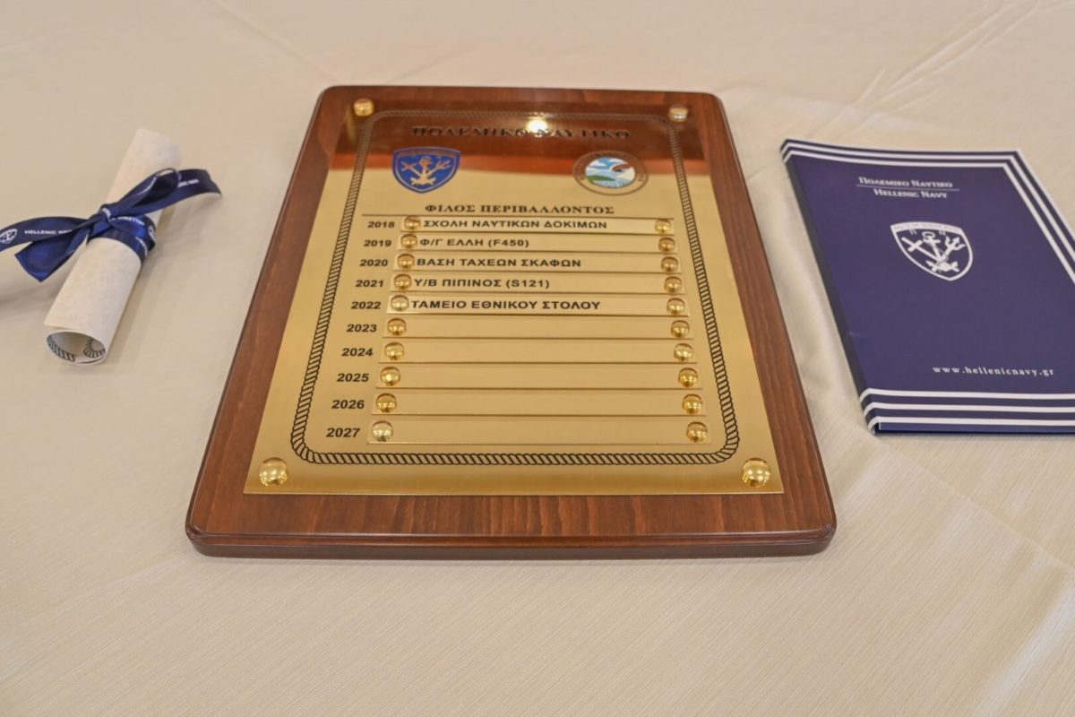 Την επίδοση του τιμητικού διπλώματος υψηλής περιβαλλοντικής επίδοσης στον Διευθυντή του ΤΕΣ Αρχιπλοίαρχο (Ο) Δημήτριο Τζάφο ΠΝ παρέδωσε ο Αρχηγός ΓΕΝ Αντιναύαρχος Ιωάννης Δρυμούσης ΠΝ.