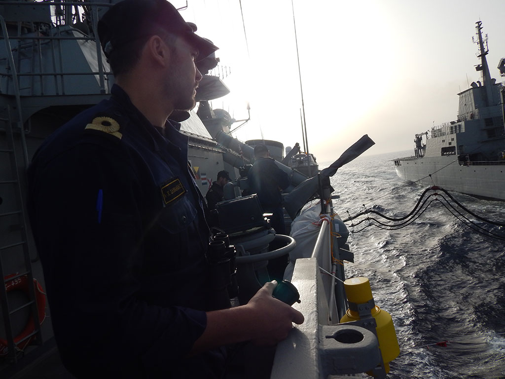 Ανεφοδιασμό εν πλω από πετρελαιοφόρο της ΝΑΤΟϊκής ναυτικής δύναμης που συμμετέχει στην επιχείρηση «SEA GUARDIAN» πραγματοποίησε η Φ/Γ ΣΑΛΑΜΙΣ (F455) η οποία έχει και την Τακτική Διοίκηση της επιχείρισης κατά το διάστημα 14-10 Απριλίου 2017. Η εν λόγω δραστηριότητα έγινε μετά τον απόπλου των σκαφών της διασυμμαχικής δύναμης από τον τουρκικό Ναύσταθμο του Ακσάζ.
