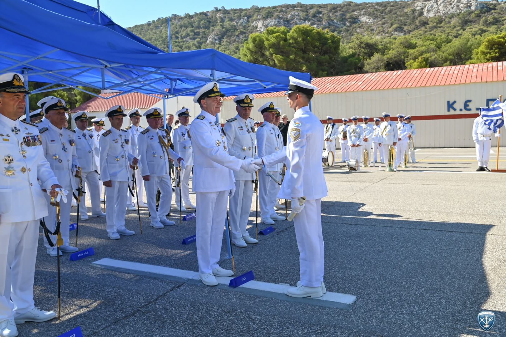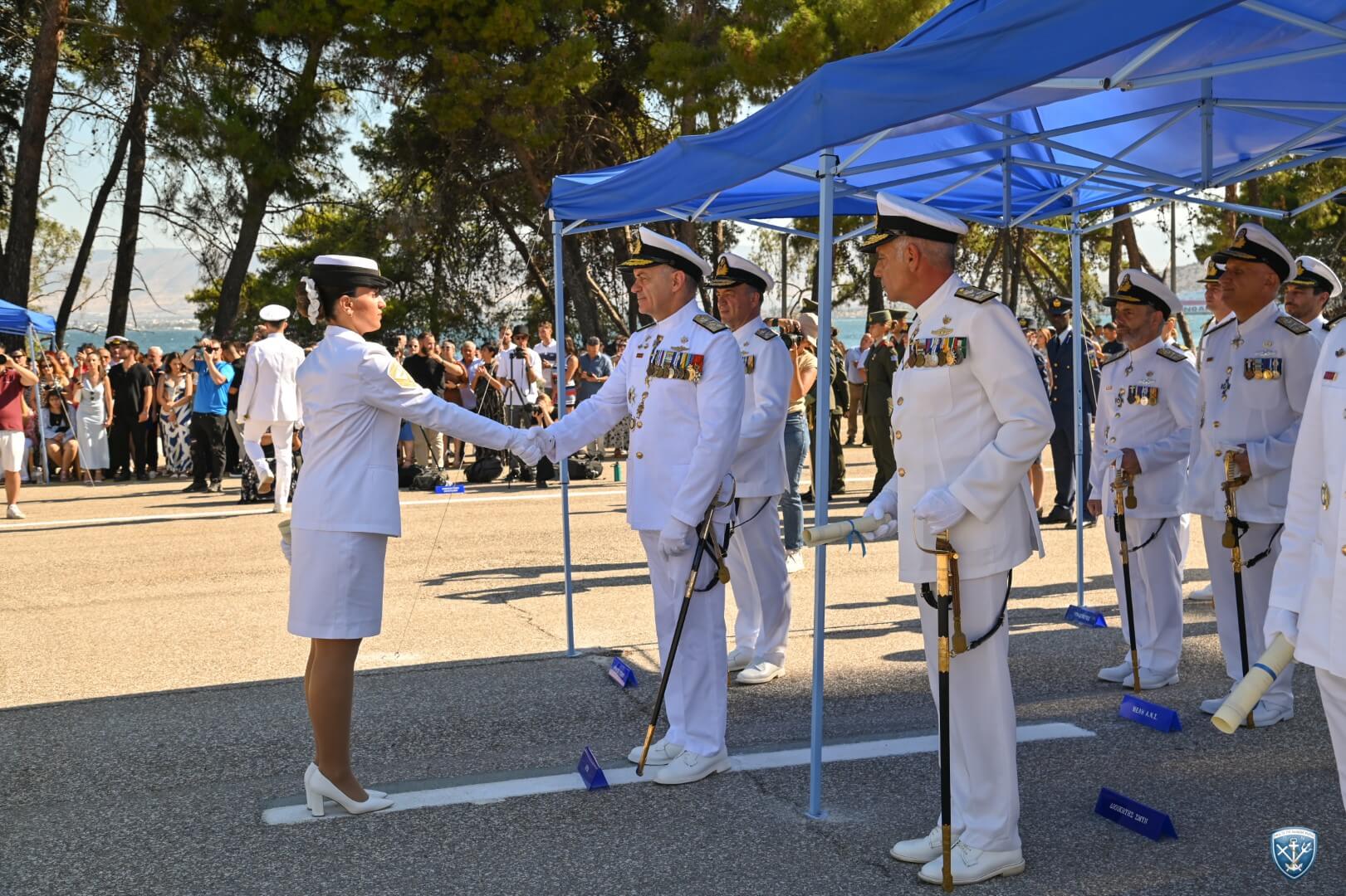 Τα πτυχία αποφοίτησης επέδωσε ο Αρχηγός ΓΕΝ Αντιναύαρχος Δημητρίος-Ελευθερίος Κατάρας ΠΝ, ο οποίος εκπροσώπησε και τον Αρχηγό ΓΕΕΘΑ Στρατηγό Δημήτριο Χούπη.
