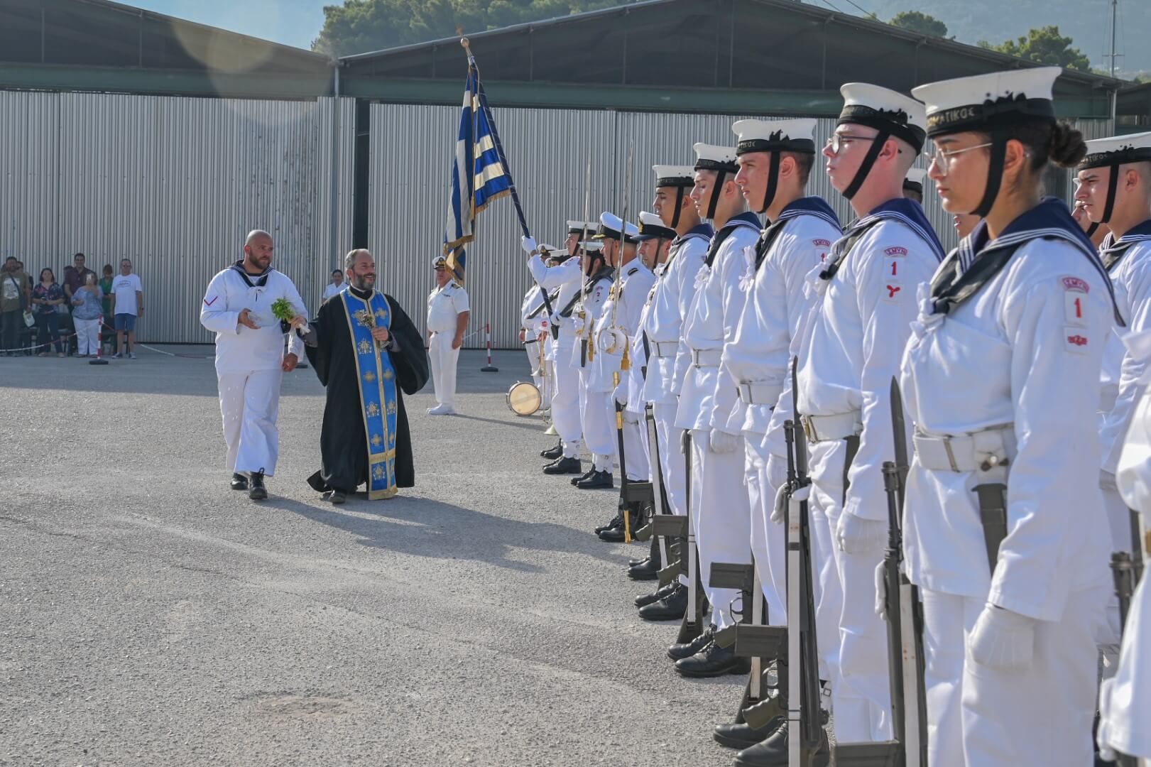 Στην τελετή επίσης παρέστησαν ο Αρχηγός Στόλου Αντιναύαρχος Δημήτριος – Ελευθέριος Κατάρας ΠΝ, ο Διοικητής Διοικήσεως Ναυτικής Εκπαίδευσης (ΔΝΕ), Υποναύαρχος Πολυχρόνης Κουλούρης ΠΝ, o Διοικητής ΣΜΥΝ Πλοίαρχος Αντώνιος Ασβεστάς ΠΝ, ο Διοικητής Διοίκησης Αμφιβίων Δυνάμεων (ΔΑΔ) Πλοίαρχος Αντώνιος Νιρός ΠΝ, καθώς και συγγενείς και φίλοι των Δοκίμων Υπαξιωματικών.