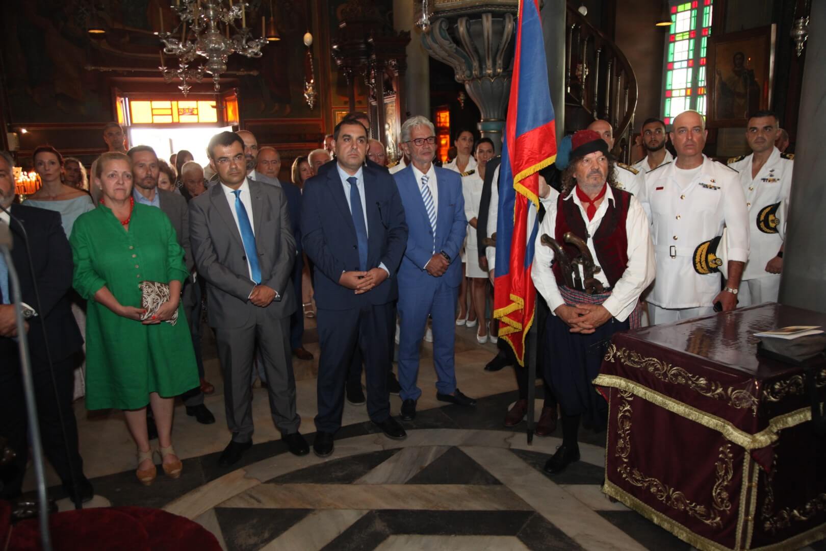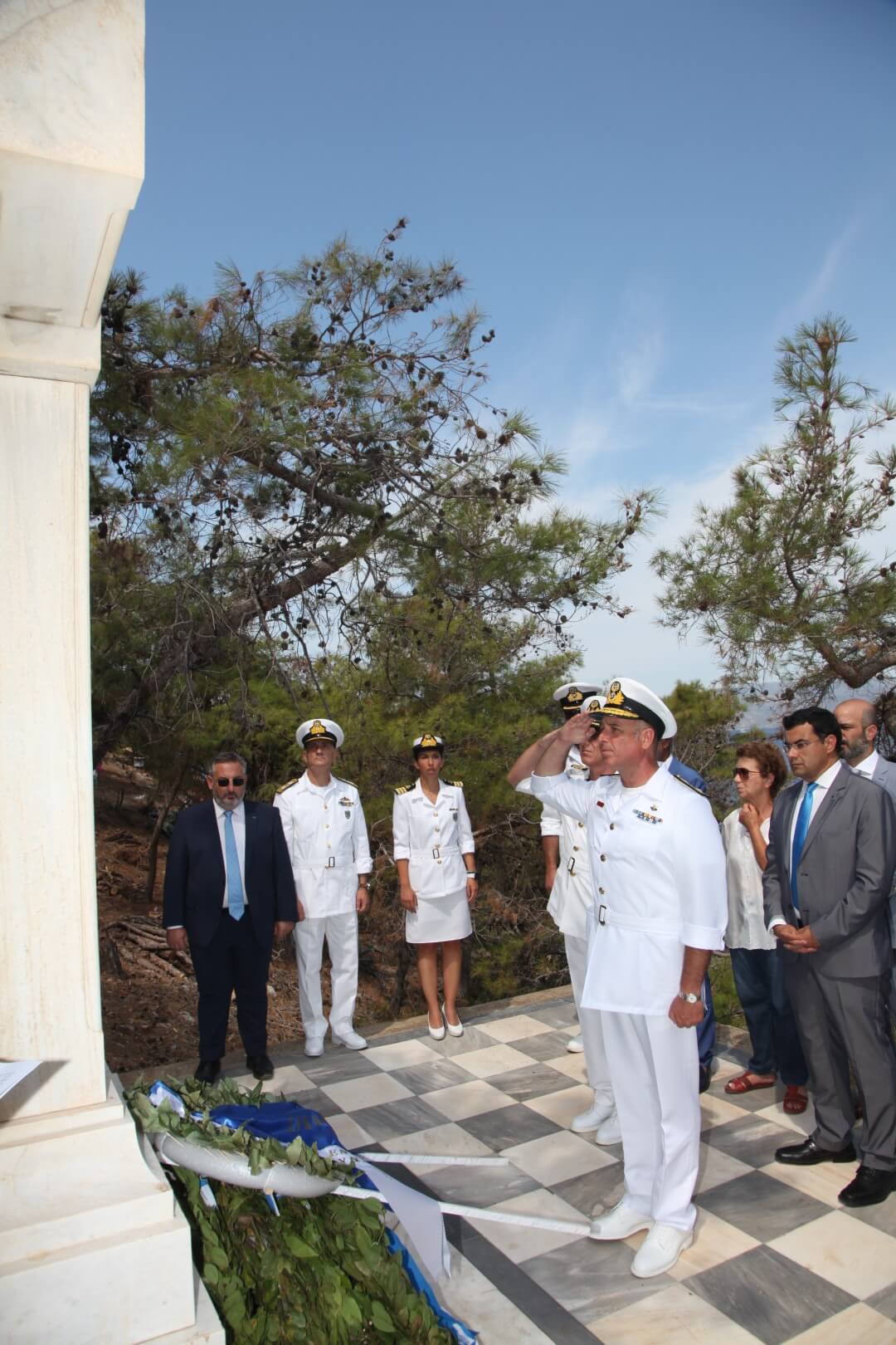 Στις εκδηλώσεις παρέστη, ως εκπρόσωπος του Αρχηγού ΓΕΕΘΑ Στρατηγού Κωνσταντίνου Φλώρου και του Αρχηγού ΓΕΝ Αντιναυάρχου Ιωάννη Δρυμούση ΠΝ, ο Διοικητής του Ναυστάθμου Σαλαμίνας (ΝΣ) Αρχιπλοίαρχος (Μ) Πάνος Καπασάκης ΠΝ, ο οποίος κατέθεσε στεφάνι στο μνημείο και στον τάφο του Ναυάρχου Κουντουριώτη.