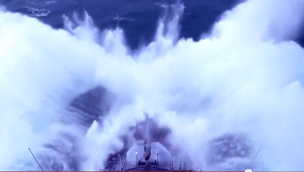 ΤΡΙΚΥΜΙΑ: Βίντεο που θέλει «δραμαμίνη» – Πολεμικό πλοίο «παλεύει» με τα κύματα
