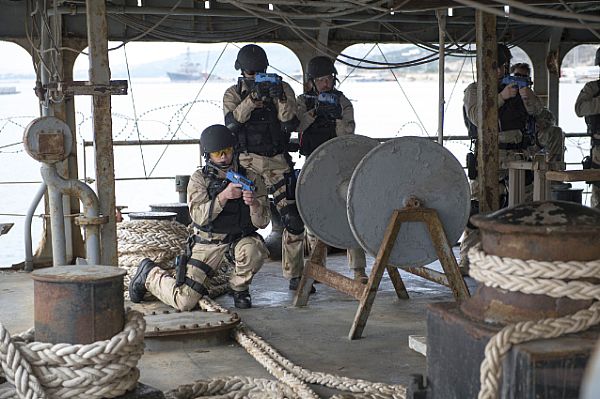 Όπως την αντιμετώπιση υπόπτων (πειρατών, τρομοκρατών) με επιχειρήσεις κατάληψης ή ανακατάληψης πλοίου με ασκήσεις ρεσάλτων, κίνησης και ελέγχων εξωτερικών και εσωτερικών χώρων πλοίων. Όλα αυτά γίνονται στο πλοίο εκπαίδευσης »Αρης» του ΠΝ που βρίσκεται δεμένο στην Σούδα- στην συνέχεια θεωρητικών μαθημάτων .