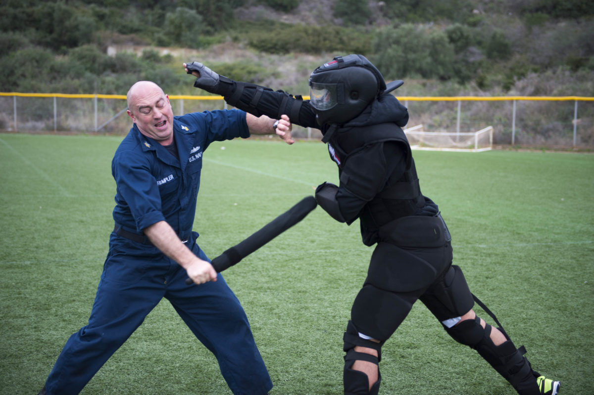 Ένα χεράκι …ξύλο ανταλλάσσουν μεταξύ τους οι Αμερικανοί ναύτες μόλις πιάνουν Σούδα! Όχι, δεν πρόκειται για … συνήθεις καυγάδες μεταξύ ναυτικών , αλλά για πρόγραμμα εκπαίδευσης στην αυτοάμυνα στο πλαίσιο των καθηκόντων τους για αντιμετώπιση τυχόν επίθεση πειρατών κλπ. Και για να αλλάζουν λίγο τη ρουτίνα της εκπαίδευσης μέσα στο πλοίο, όταν βγαίνουν στην στεριά, σε ειδικό χώρο στην προβλήτα, οι άντρες της δύναμης ασφαλείας του πολεμικού πλοίου (SRF) κάνουν τα …κόλπα τους.