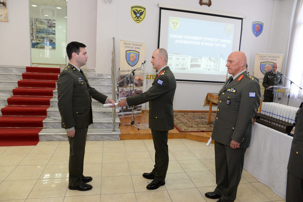 Αποφοίτησε η 10η Εκπαιδευτική Σειρά της Σχολής Πολέμου του Στρατού Ξηράς, όπως ανακοίνωσε το Γενικό Επιτελείου Στρατού (ΓΕΣ), υπογραμμίζοντας ότι συνολικά 116 Αξιωματικοί, εκ των οποίων 16 από την Kύπρο και 1 από την Βοσνία – Ερζεγοβίνη ολοκλήρωσαν με επιτυχία τις σπουδές τους.