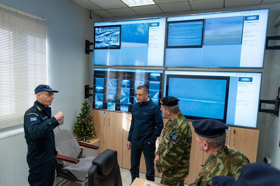 Περαιτέρω επισκέφθηκε το νεοσυσταθέν Ενιαίο Κέντρο Ελέγχου – Επιτήρησης Συνόρων (ΕΚΕΕΣ), στη Νέα Βύσσα Ορεστιάδας, όπου ενημερώθηκε για τη λειτουργία του και τις δυνατότητες επιτήρησης καθώς καi το Κέντρο Υποδοχής και Ταυτοποίησης (ΚΥΤ) του Έβρου, όπου συναντήθηκε και συνομίλησε με τη διοικητή.