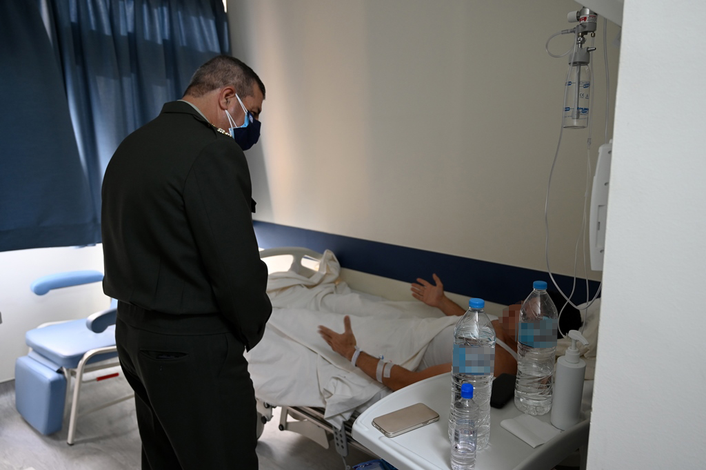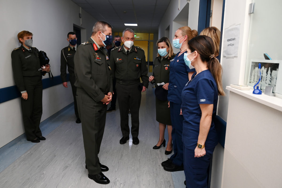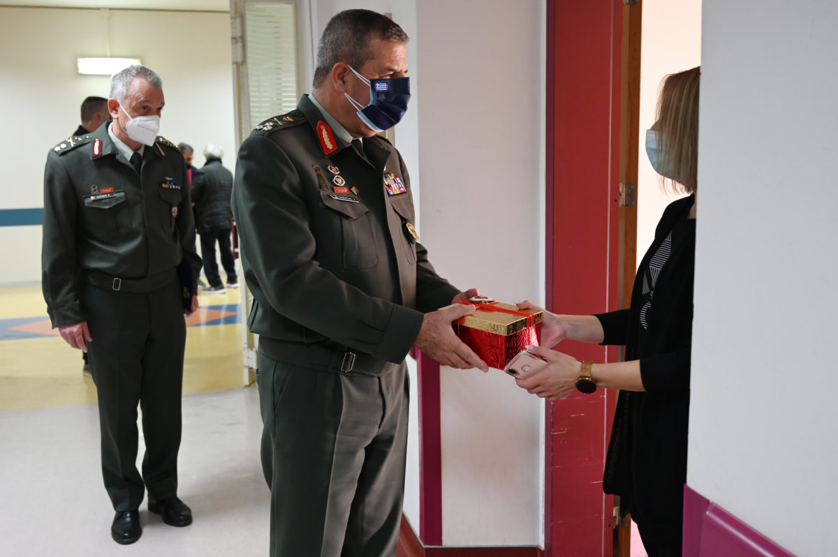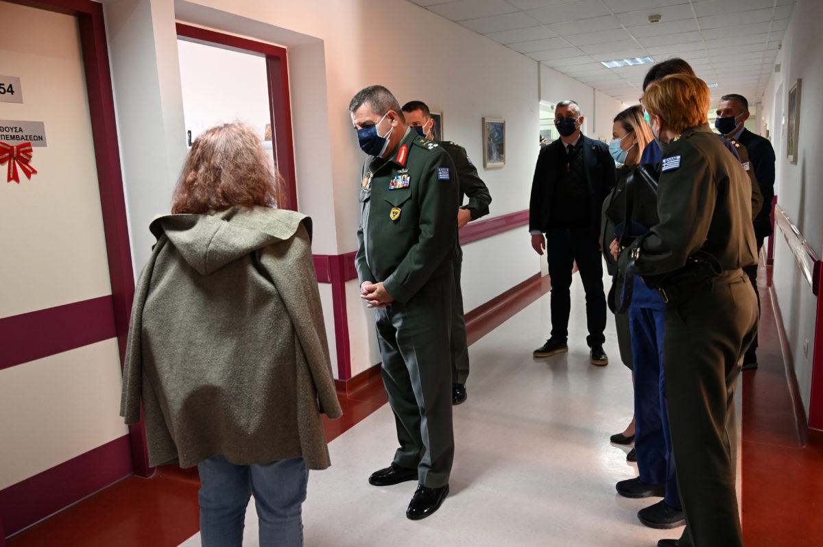 Κατά τη διάρκεια της επίσκεψής του, ο Αρχηγός συνομίλησε με ασθενείς του νοσοκομείου, συνεχάρη το ιατρικό και νοσηλευτικό προσωπικό για το σημαντικό και δύσκολο έργο που επιτελεί υπό την παρούσα υγειονομική συγκυρία και αντάλλαξε μαζί τους ευχές εν όψει της Πρωτοχρονιάς.