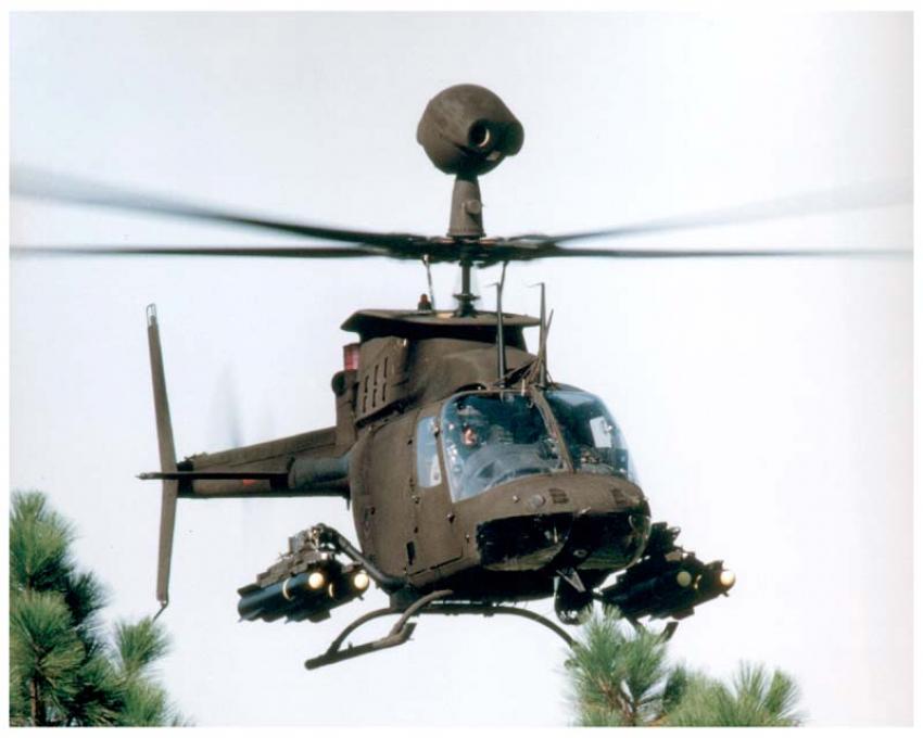 Ρόλο επιχειρησιακής υποστήριξης των Απάτσι του αμερικανικού στρατού καλύπτουν - μεταξύ άλλων - και τα υπό συζήτηση OH-58D Kiowa : Πρόκειται για ένα μονοκινητήριο ελικόπτερο, με πλήρωμα δύο ατόμων βασισμένο στην πολυχρησιμοποιημένη πλατφόρμα του ελικοπτέρου Bell 206. Επί αυτού έχει , μεταξύ άλλων , προστεθεί το σύστημα MMS (Mast Mounted System) πάνω από το στροφείο που συνδυάζει κάμερα ημέρας, συστήματος θερμικής απεικόνισης και αποστασιόμετρο/δείκτη laser, δίνοντας του μια χαρακτηριστική φιγούρα αλλά και πολλές επιχειρησιακές δυνατότητες. Το ελικόπτερο έχει δυνατότητα να φέρει βλήματα AGM-114 HELLFIRE,AIM-92 Stinger, 7πλους καλάθους ρουκετών Hydra των 70 mm και ατρακτίδιο πολυβόλου των 12,7 χλστ. κ.α.