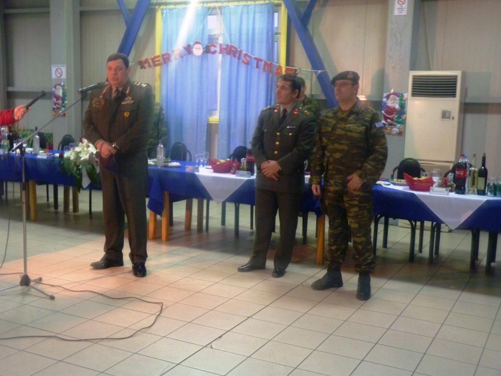 Κατά την εκεί παραμονή του μετείχε σε δοξολογία στον Ιερό Ναό της Παναγίας της Ελευθερώτριας, στο Στρατόπεδο «Ρήγας Φεραίος», αντάλλαξε ευχές με το προσωπικό και παραβρέθηκε σε εορταστικό τραπέζι με το προσωπικό της αποστολής. Ακολουθούν φωτογραφικά στιγμιότυπα από την επίσκεψη.