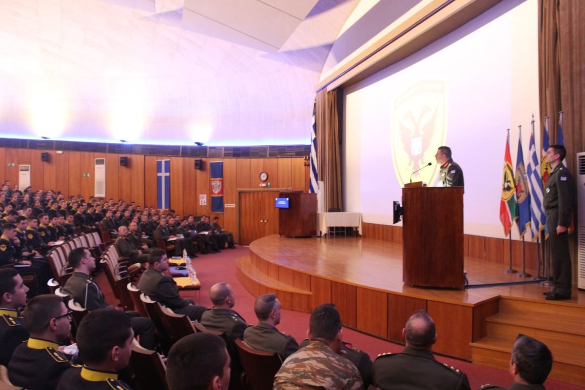 Εκεί ο αντιστράτηγος Χ. Λαλούσης για να πραγματοποιήσει την πρώτη ομιλία του σε στελέχη του Στρατού ξηράς ξεκινώντας από τους νέους Ευέλπιδες δίνοντας σχετικές οδηγίες και κατευθύνσεις .