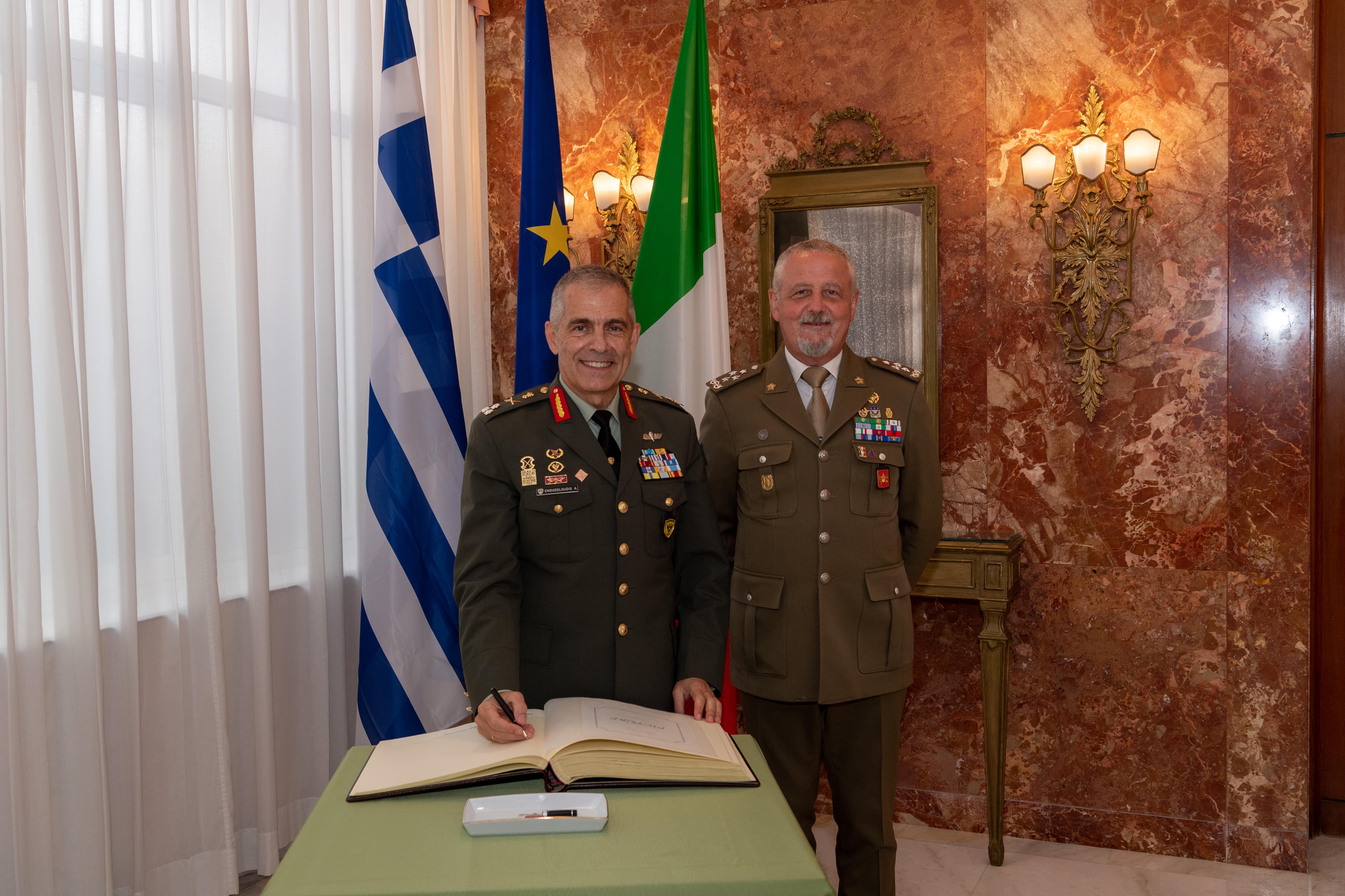 Στο πλαίσιο της επίσκεψης, ο αρχηγός ΓΕΣ πραγματοποίησε επίσκεψη στη Σχολή Πεζικού του Ιταλικού Στρατού και στο Σύνταγμα «Lancieri di Montebello», όπου ενημερώθηκε για την αποστολή και τις δραστηριότητές τους και περιηγήθηκε στις εγκαταστάσεις τους.