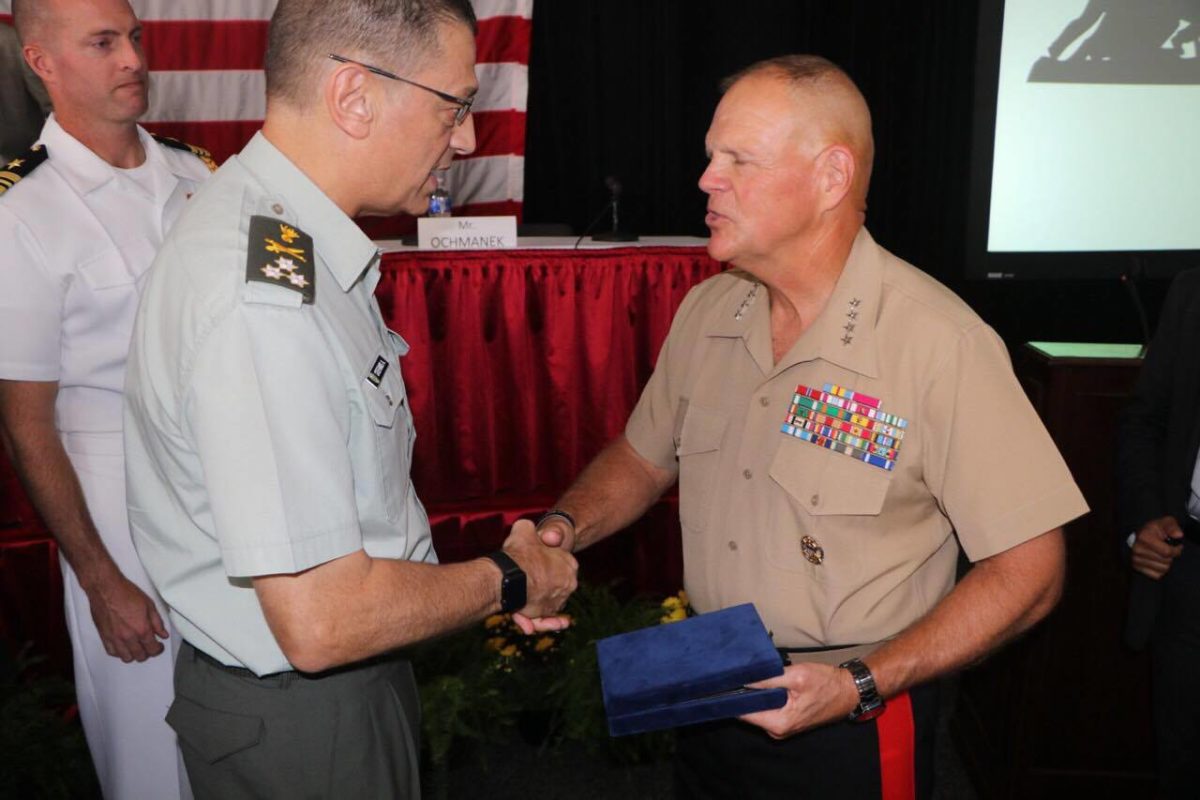 Συναντήθηκε με τον Αρχηγό των Πεζοναυτών, Στρατηγό Robert B. Neller και λοιπούς Αξιωματικούς του Στρατού των ΗΠΑ και συζήτησαν θέματα αμοιβαίου ενδιαφέροντος.