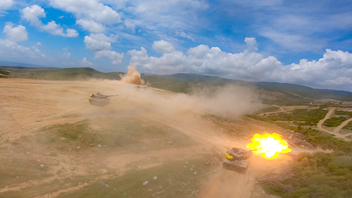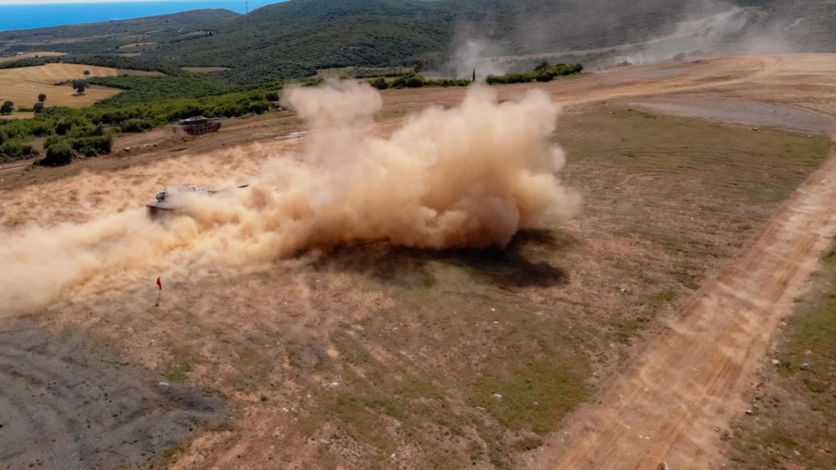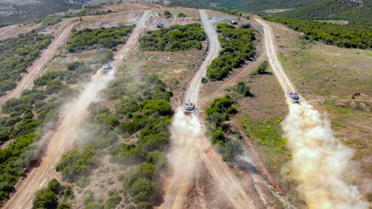 Στην άσκηση εξετάστηκαν διαδικασίες και τεχνικές διεξαγωγής επιθετικών επιχειρήσεων από συγκρότημα Ιλης αρμάτων.