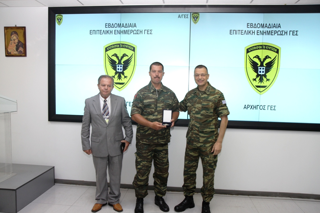 Βραβεύθηκε από τον Αρχηγό ΓΕΣ, ο Υποδεκανέας Υγειονομικού Δήμου Κωνσταντίνος, της δύναμης του Τάγματος Εθνοφυλακής Κέρκυρας την Παρασκευή 21 Ιουλίου 2017.