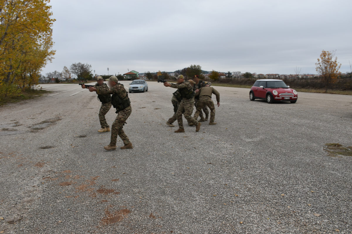 Η εκπαίδευση, η οποία πραγματοποιήθηκε για πρώτη φορά, περιέλαβε αρχικά ενημέρωση επί των αρχών συνοδείας υψηλών προσώπων και επί των βασικών αρχών αυτοκινητοπομπών και στη συνέχεια πρακτική εξάσκηση σε αντικείμενα προστασίας ευπαθών στόχων, σχηματισμών ομάδων προστασίας, αντίδρασης ομάδας συνοδείας σε απειλή, βολών με ατομικό τυφέκιο και βολών μάχης ταχείας αντίδρασης.