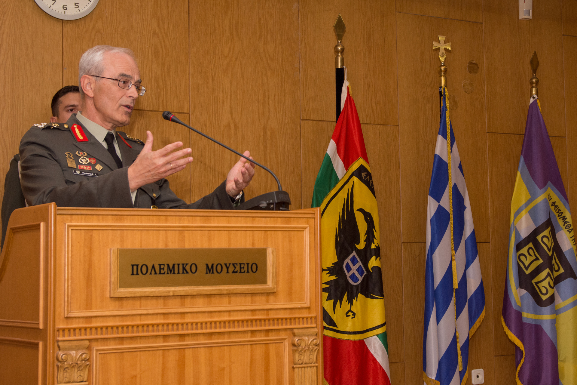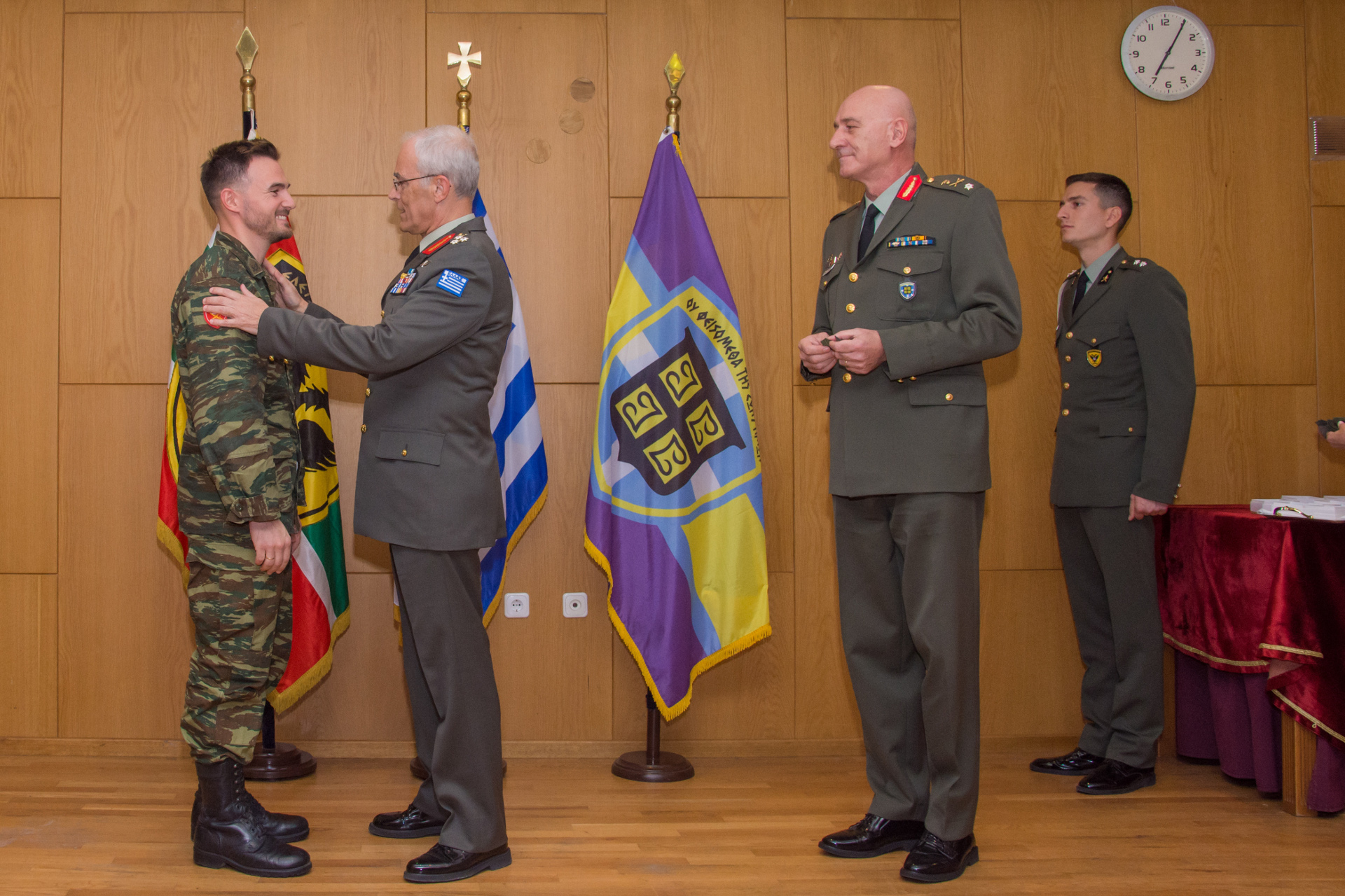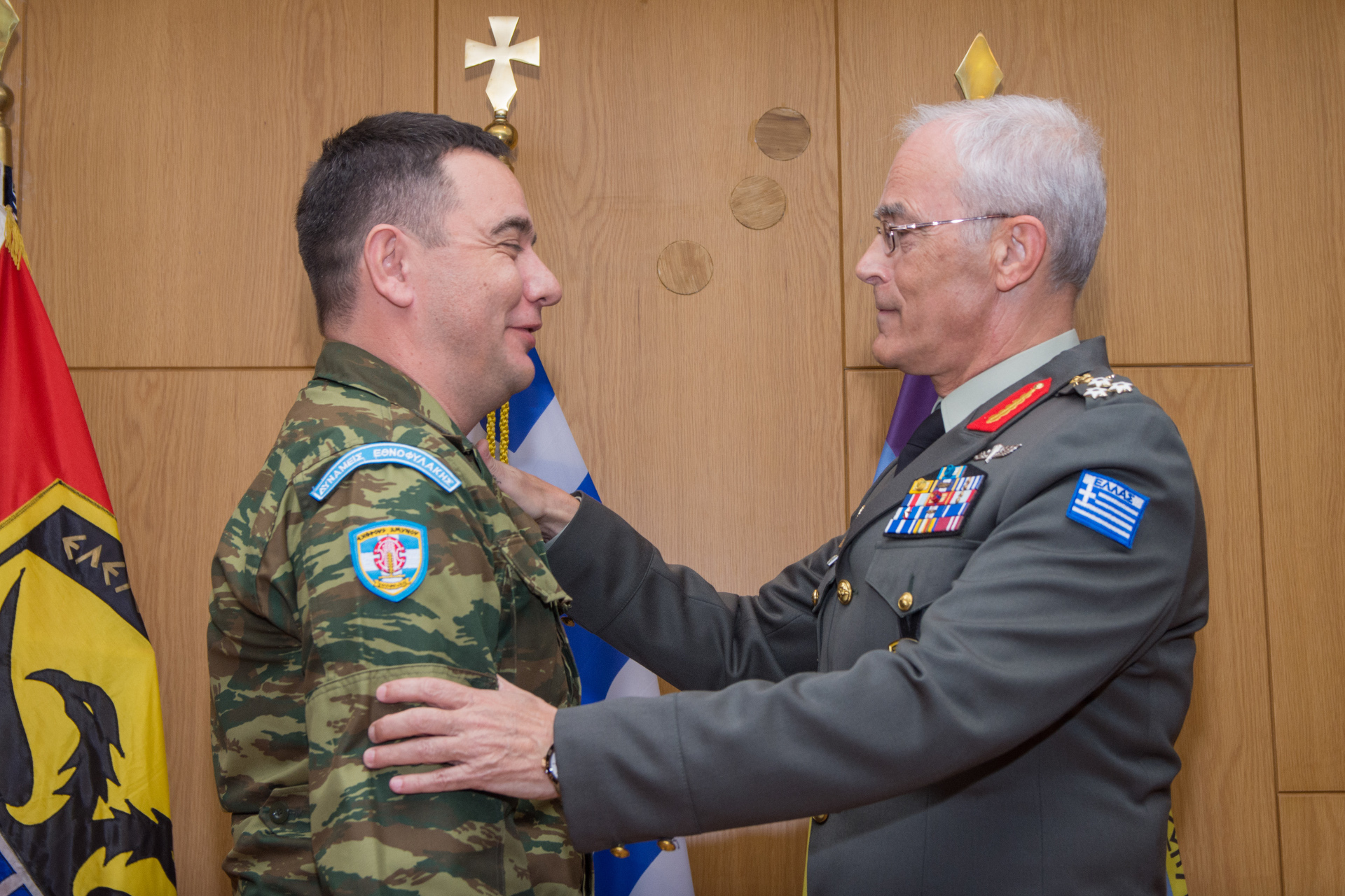 Στην τελετή επίδοσης των διακριτικών, ο Αρχηγός απηύθυνε χαιρετισμό κατά τον οποίο συνεχάρη τους Εφέδρους για την προαγωγή τόνισε τους αδιάρρηκτους δεσμούς των εφέδρων με τα μόνιμα Στελέχη και τους Οπλίτες του Στρατού Ξηράς, συνεχάρη και τις υπηρεσίες που προσφέρουν εθελοντικά στην Πατρίδα, έχοντας υψηλά το αίσθημα του καθήκοντος, ενώ παράλληλα τους παρότρυνε να συνεχίσουν με την ίδια συνέπεια τα καθήκοντά τους και τις υποχρεώσεις στους νέου τους βαθμούς.