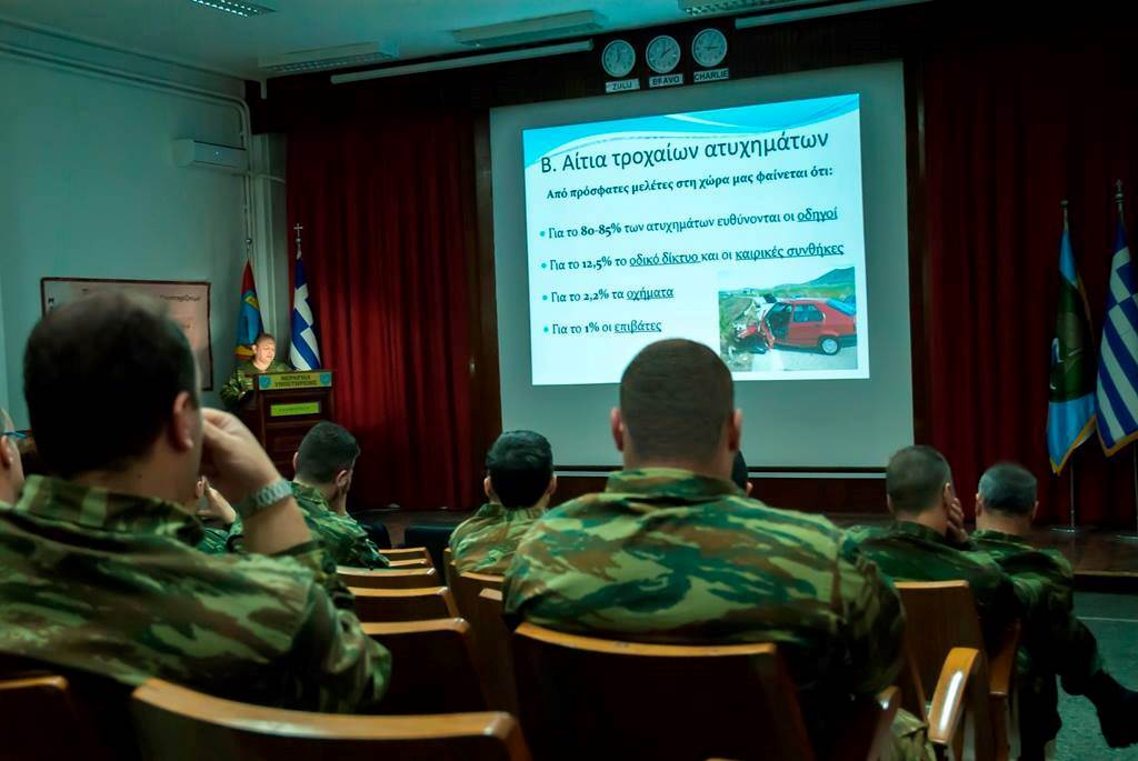 Το διήμερο 23 και 24 Ιανουαρίου 2019, στο πλαίσιο ανάληψης δράσεων για τον μηδενισμό των τροχαίων ατυχημάτων, οργανώθηκαν και πραγματοποιήθηκαν από τις Διοικήσεις κάθε κλιμακίου μέχρι επιπέδου Μονάδας – Ανεξάρτητης Υπομονάδας, εκπαιδευτικές διαλέξεις με θέμα «Οδηγίες Πρόληψης Τροχαίων Ατυχημάτων», στο σύνολο του προσωπικού του Στρατού Ξηράς.