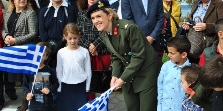 Έτσι σήμερα στην παρέλαση της 28ης Οκτωβρίου στην Μύρινα της Λήμνου, 2 γυναίκες στελέχη της 88 ΣΔΙ Λήμνου μοίρασαν την Ελληνική σημαία στα παιδιά που παραβρέθηκαν στην παρέλαση.