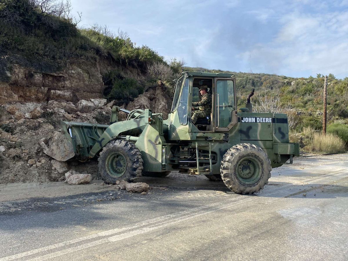Ο Στρατός Ξηράς, με εντολή του ΓΕΕΘΑ και έγκριση του υπουργείου Εθνικής ‘Αμυνας, συνέδραμε στην αποκατάσταση των υποδομών περιοχών, οι οποίες επλήγησαν από ακραία καιρικά φαινόμενα στη Σάμο στις 1 και 2 Φεβρουαρίου. πως ανακοινώθηκε, διάθεσε προσωπικό και μέσα για την αποκατάσταση των ζημιών.