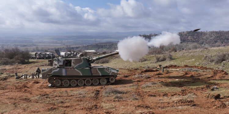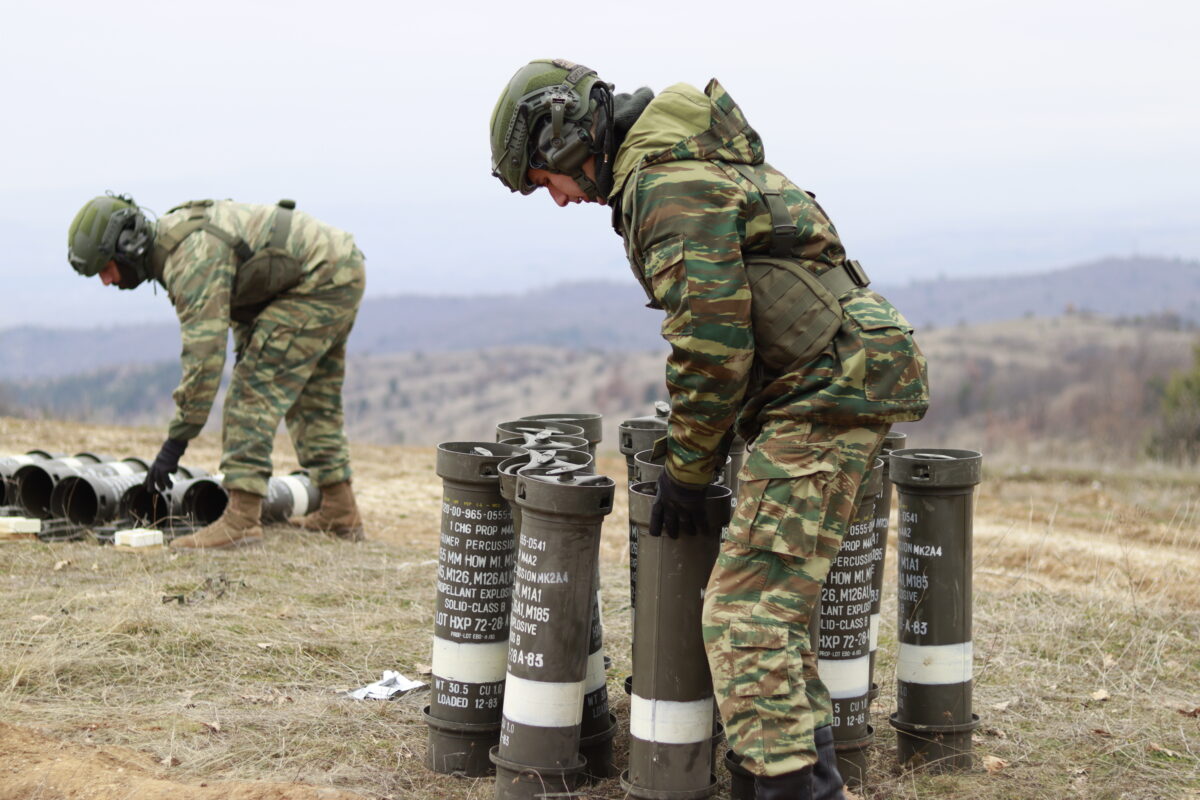 Στην ΤΑΜΣ «ΠΑΥΛΟΣ ΜΕΛΑΣ – 25» οι Ανθυπολοχαγοί και Μόνιμοι Λοχίες Πυροβολικού εκπαιδεύτηκαν στις ενέργειες και τις διαδικασίες που πραγματοποιούνται κατά τον αγώνα υποστήριξης αμυντικών και επιθετικών επιχειρήσεων, στο περιβάλλον σύγχρονου πολέμου και ειδικότερα στις ενέργειες κατά την κανονική και νυχτερινή ανάπτυξη της Πυροβολαρχίας και την εκτέλεση ειδικών βολών με εκρηκτικά, καπνογόνα και φωτιστικά βλήματα.