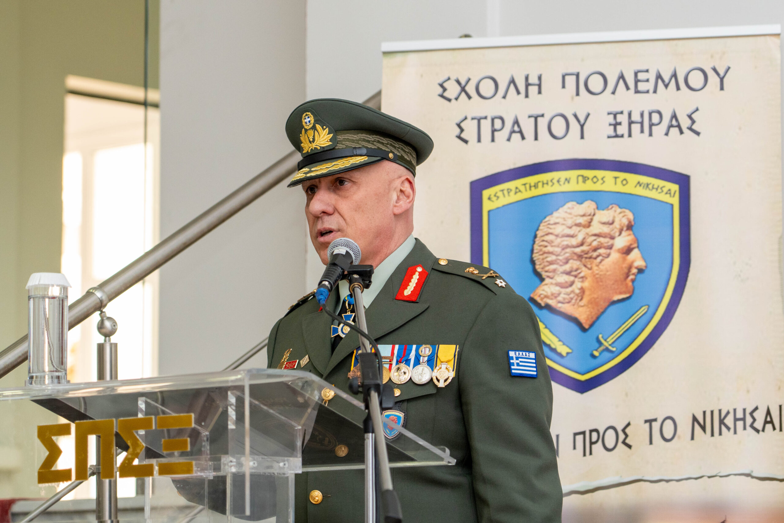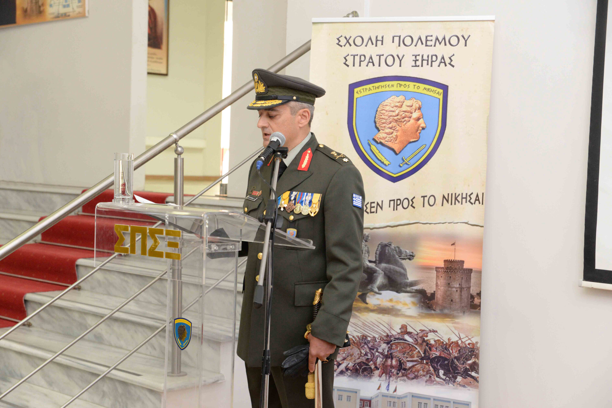 Στην τελετή, η οποία έγινε στην έδρα της Σχολής στο Στρατόπεδο «ΟΠΛΑΡΧΗΓΟΥ Δ. ΝΤΑΛΙΠΗ» στη Θεσσαλονίκη, έδωσε το παρών και ο Αρχηγός του Γενικού Επιτελείου Στρατού Αντιστράτηγου Γεώργιου Κωστίδη.
