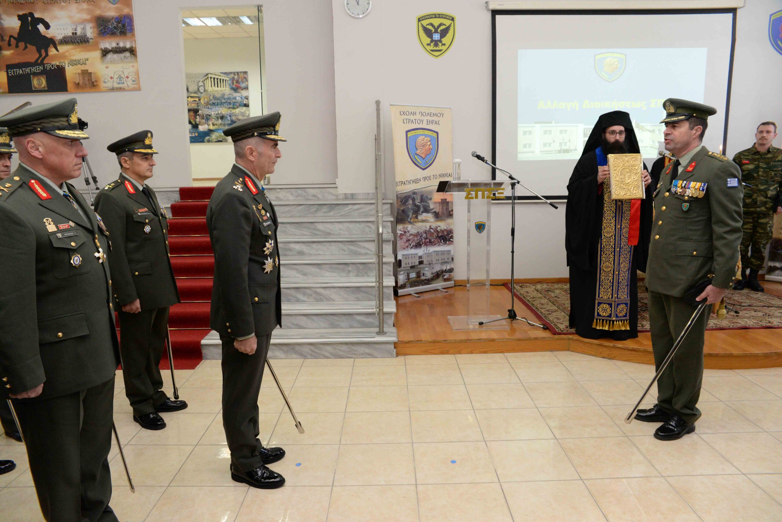Πραγματοποιήθηκε σήμερα, Τετάρτη 05 Φεβρουαρίου 2025, η τελετή παράδοσης – παραλαβής Διοικήσεως στη Σχολή Πολέμου Στρατού Ξηράς (ΣΠΣΞ), από τον Ταξίαρχο Αναστάσιο Κυριακίδη στον Ταξίαρχο Δημήτριο Ξογιάννη.