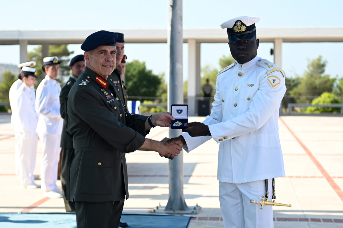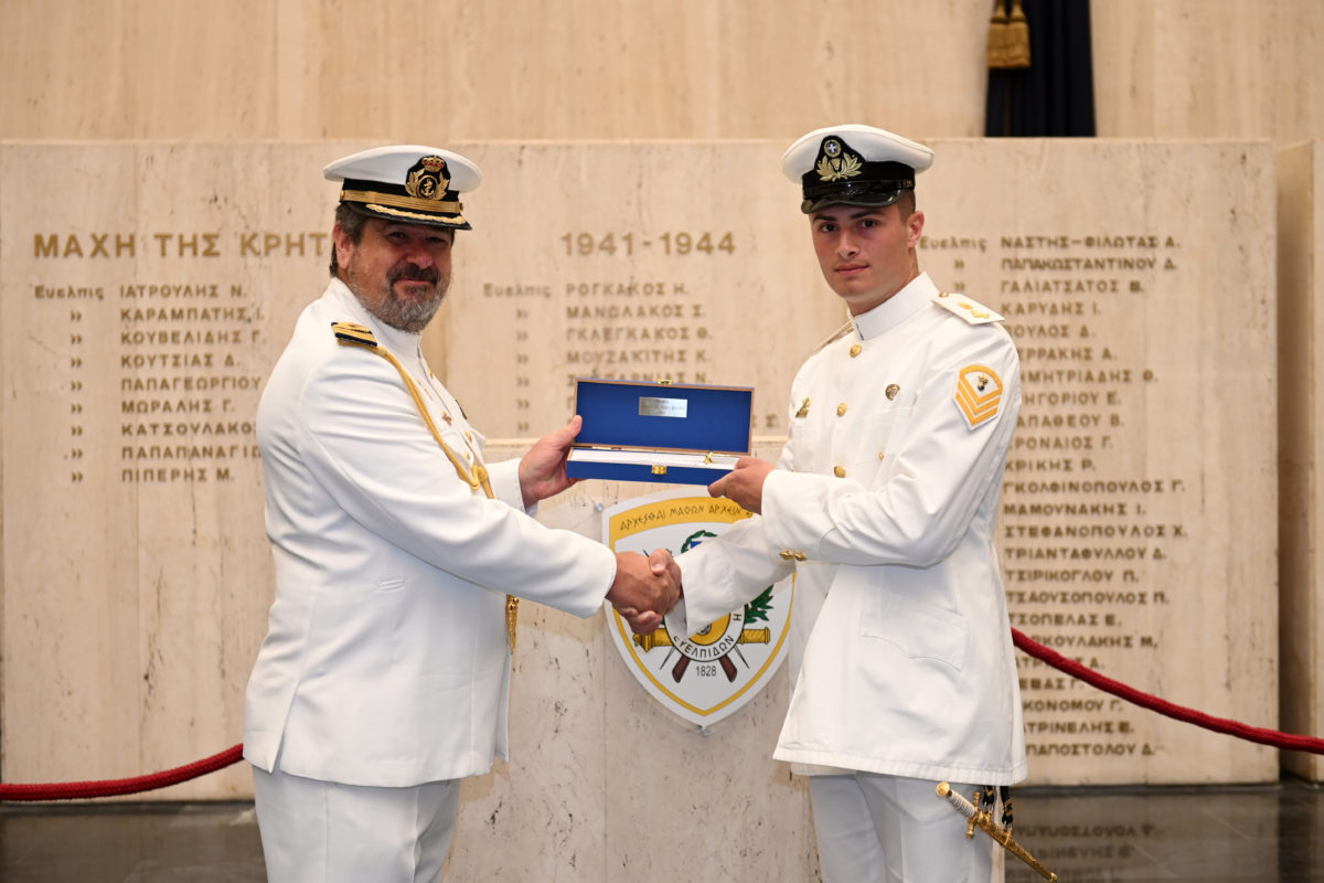 Τέλος, ο Ισπανός Ακόλουθος Άμυνας (ΑΚΑΜ) Πλοίαρχος Federico Antonio Garcia Castro απένειμε το ξιφίδιο του Ισπανικού Στρατού, στον πρωτεύσαντα Εύελπι της Τάξης 2023.