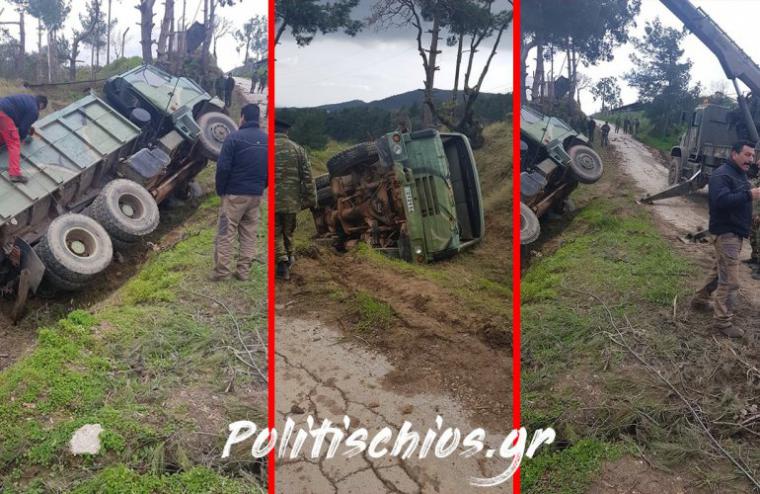 Ένα ακόμη δυσάρεστο γεγονός έλαβε χώρα σήμερα το πρωί στη νήσο Χίο όταν όχημα του Στρατού Ξηράς ανετράπη, με τα χειρότερα όμως να αποφεύγονται καθώς οι δύο επιβάτες, στελέχη του Στρατού Ξηράς δεν διατρέχουν κάποιο σοβαρό κίνδυνο, σύμφωνα με πληροφορίες.