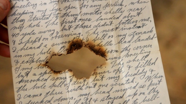 Εξίσου συγκλονιστικό ειναι ένα γράμμα απο ενα στρατιώτη ο οποίος κατα την διάρκεια του Β Παγκοσμίου Πολέμου και ενώ βρισκόταν στην Ιταλία τον πυροβόλισαν και η σφαίρα πέρασε απο το γράμμα που είχε ετοιμάσει για να στείλει (φωτο).