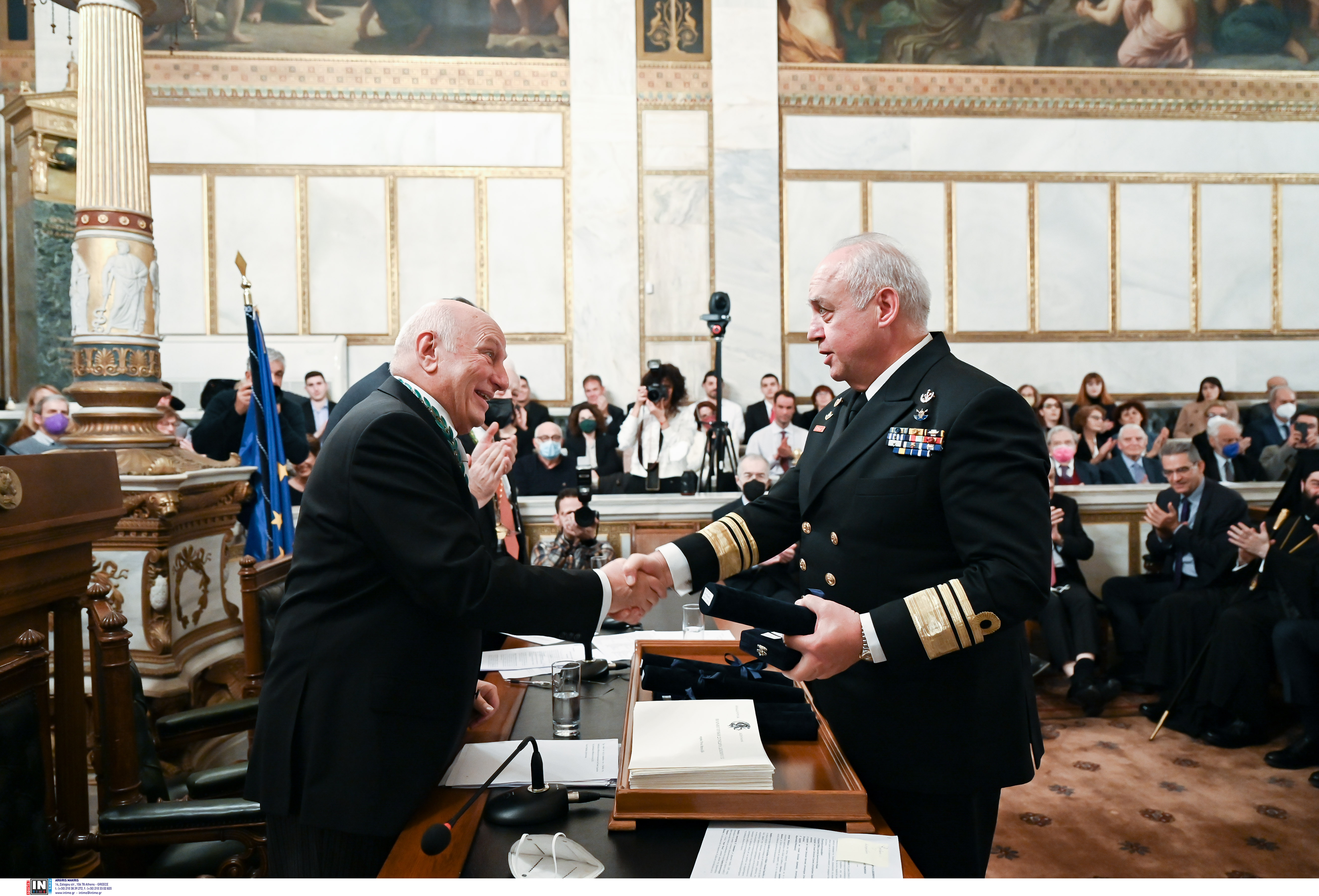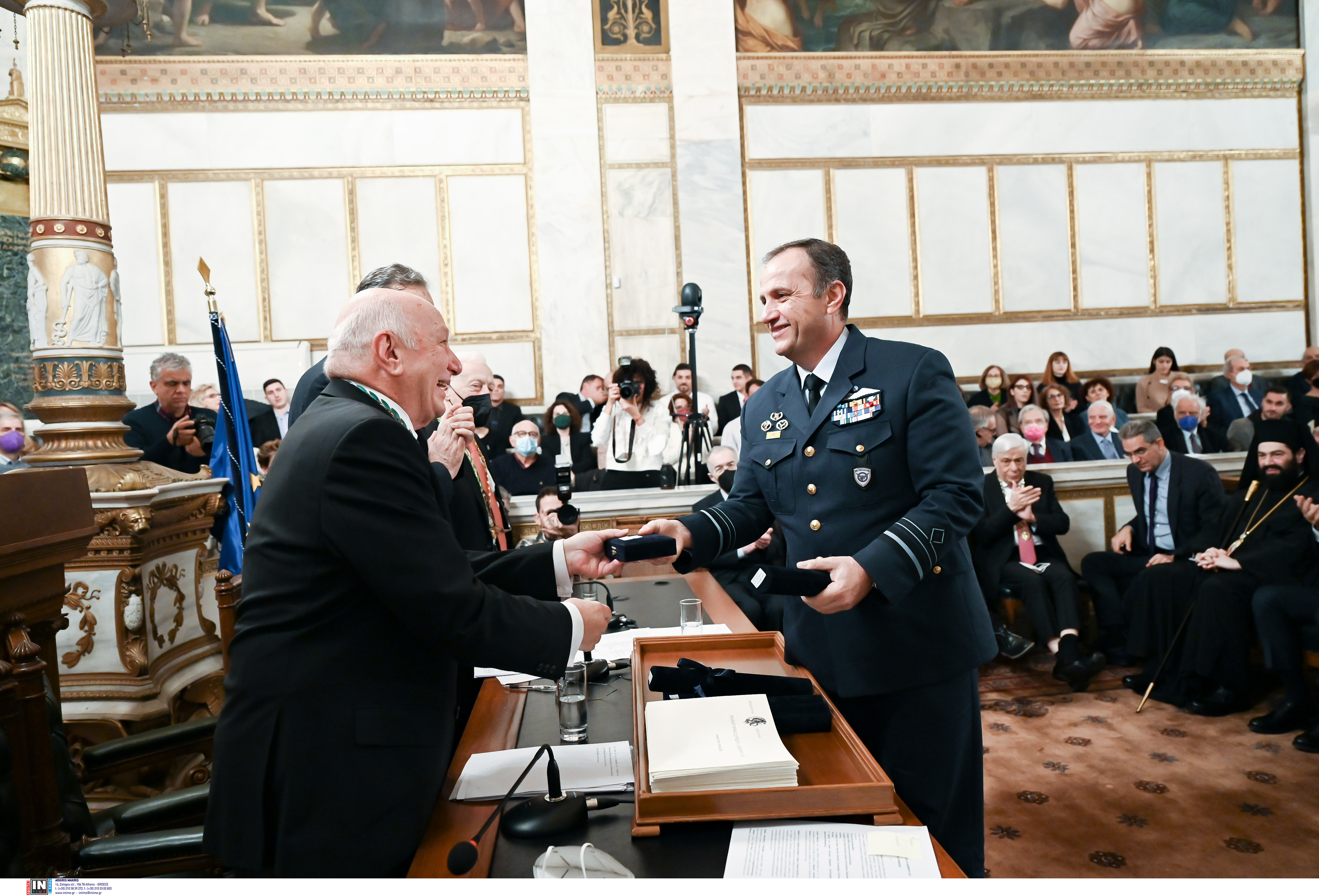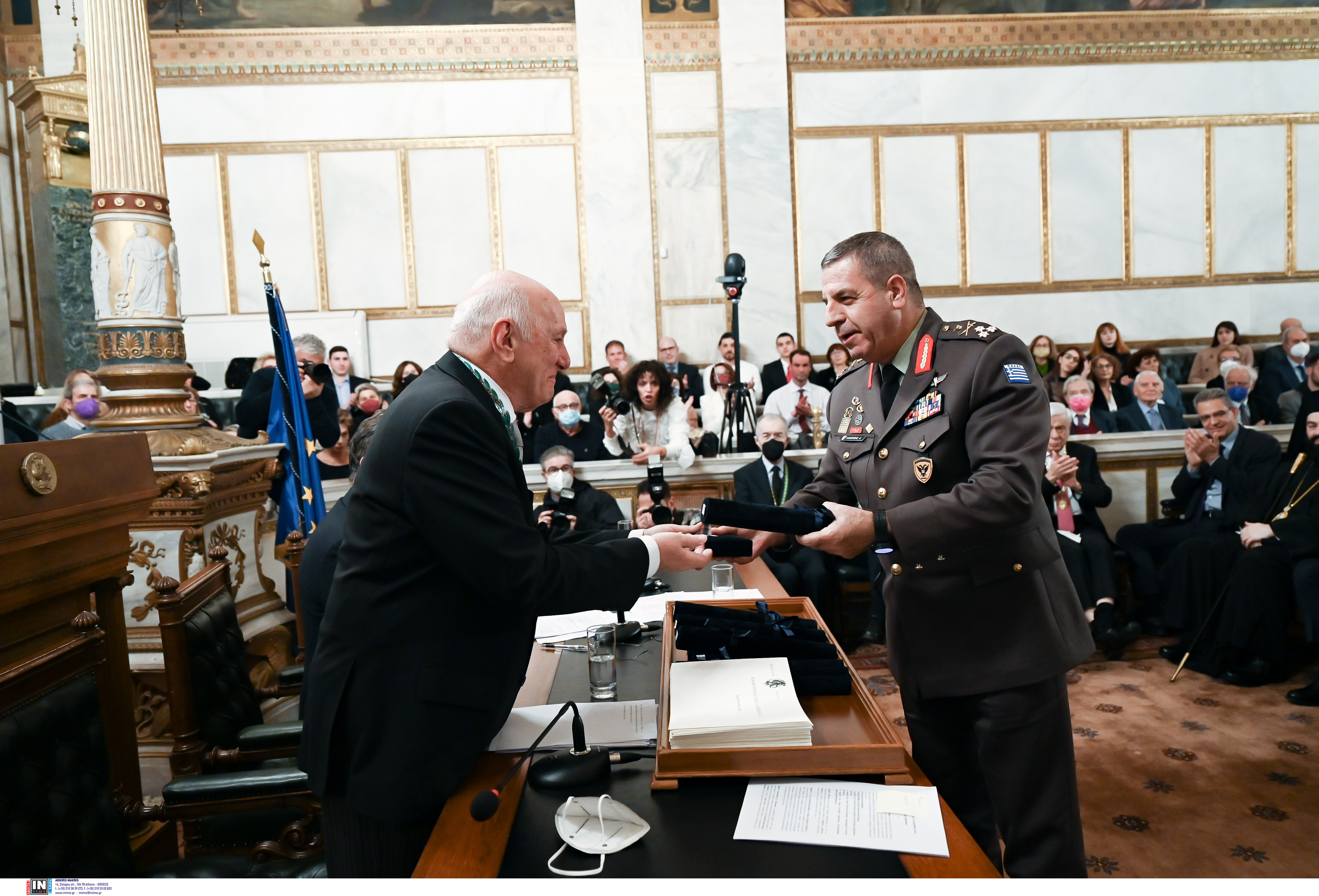 Το Χρυσό Μετάλλιο της Ακαδημίας Αθηνών παρέλαβαν για τους κλάδους τους ο αρχηγός ΓΕΣ αντιστράτηγος Χαράλαμπος Λαλούσης,