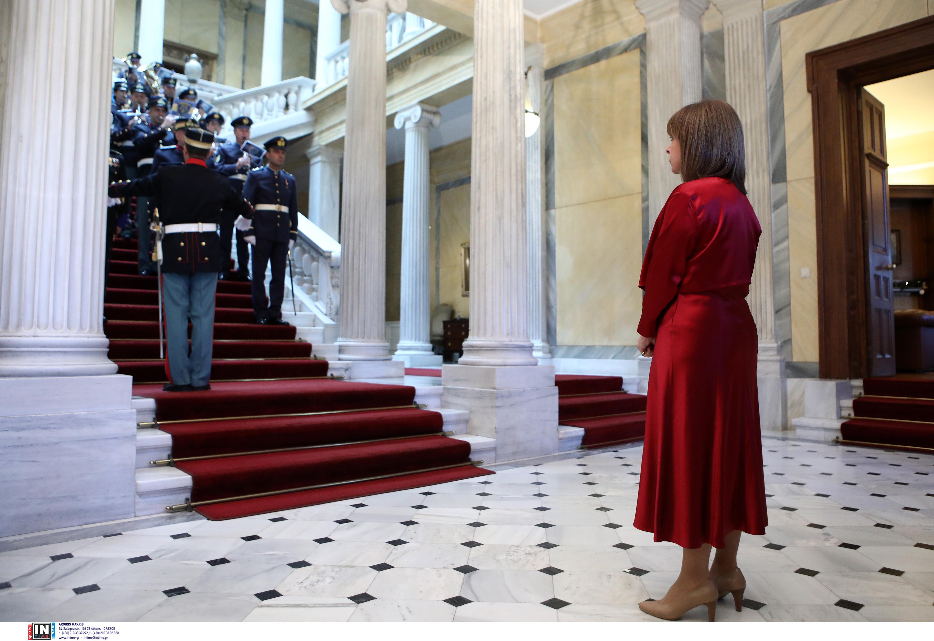 Η Μπάντα των Ενόπλων Δυνάμεων και η Προεδρική Φρουρά έψαλλαν τα πρωτοχρονιάτικα κάλαντα στην Πρόεδρο της Δημοκρατίας, Κατερίνα Σακελλαροπούλου.