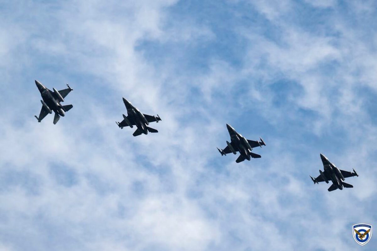 Τρία μαχητικά F-16 block 52+ adv της 335 Μοίρας «Τίγρης» ανέλαβαν ρόλο συνοδείας βομβαρδιστικών σε εικονικές αποστολές χρήσης πυρηνικών όπλων.