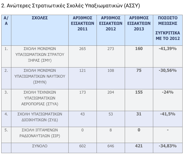 Οι πίνακες για όσους ακόμη πιστεύουν ότι η ΣΜΥ έχει 450 σπουδαστές!
