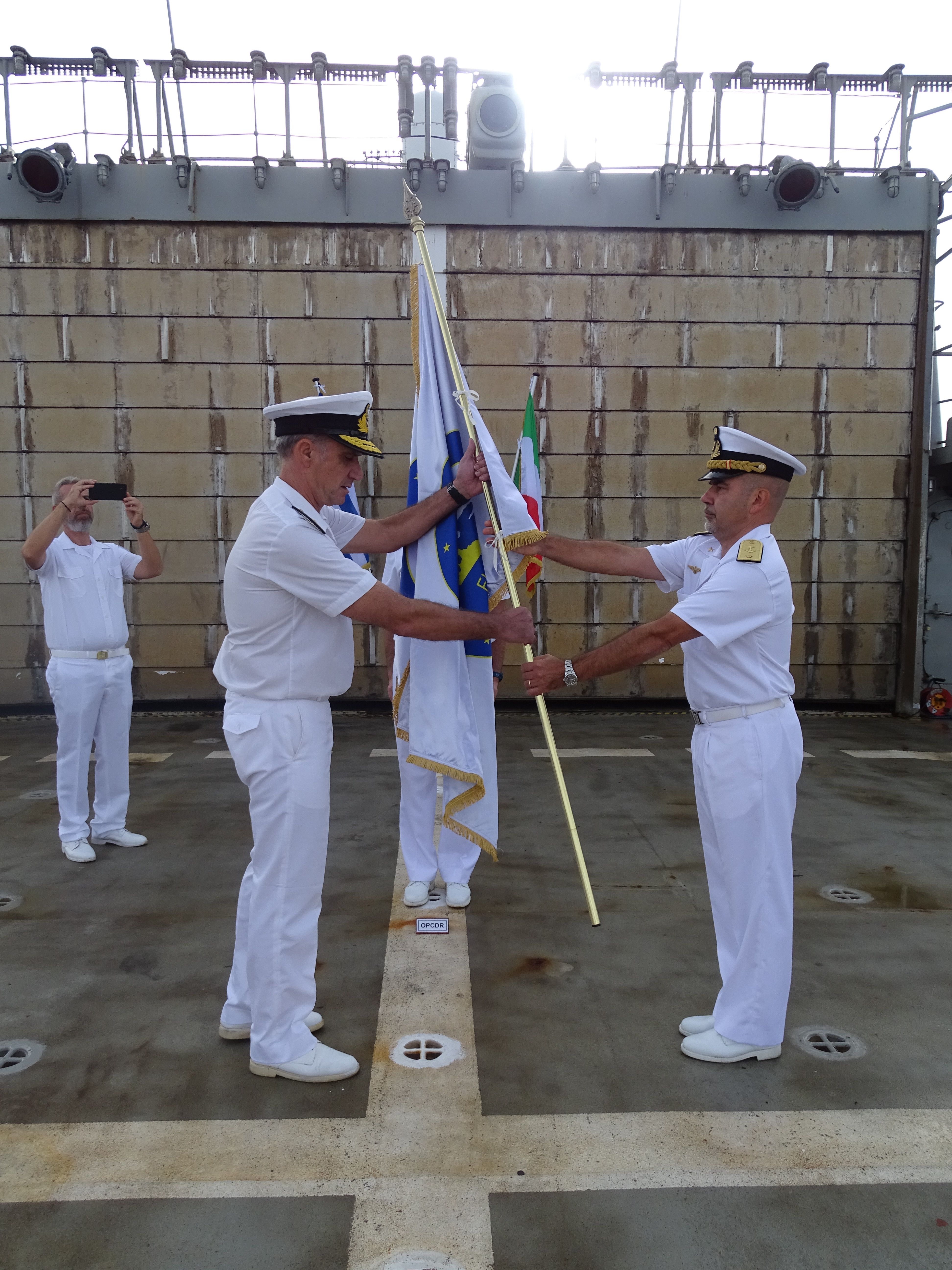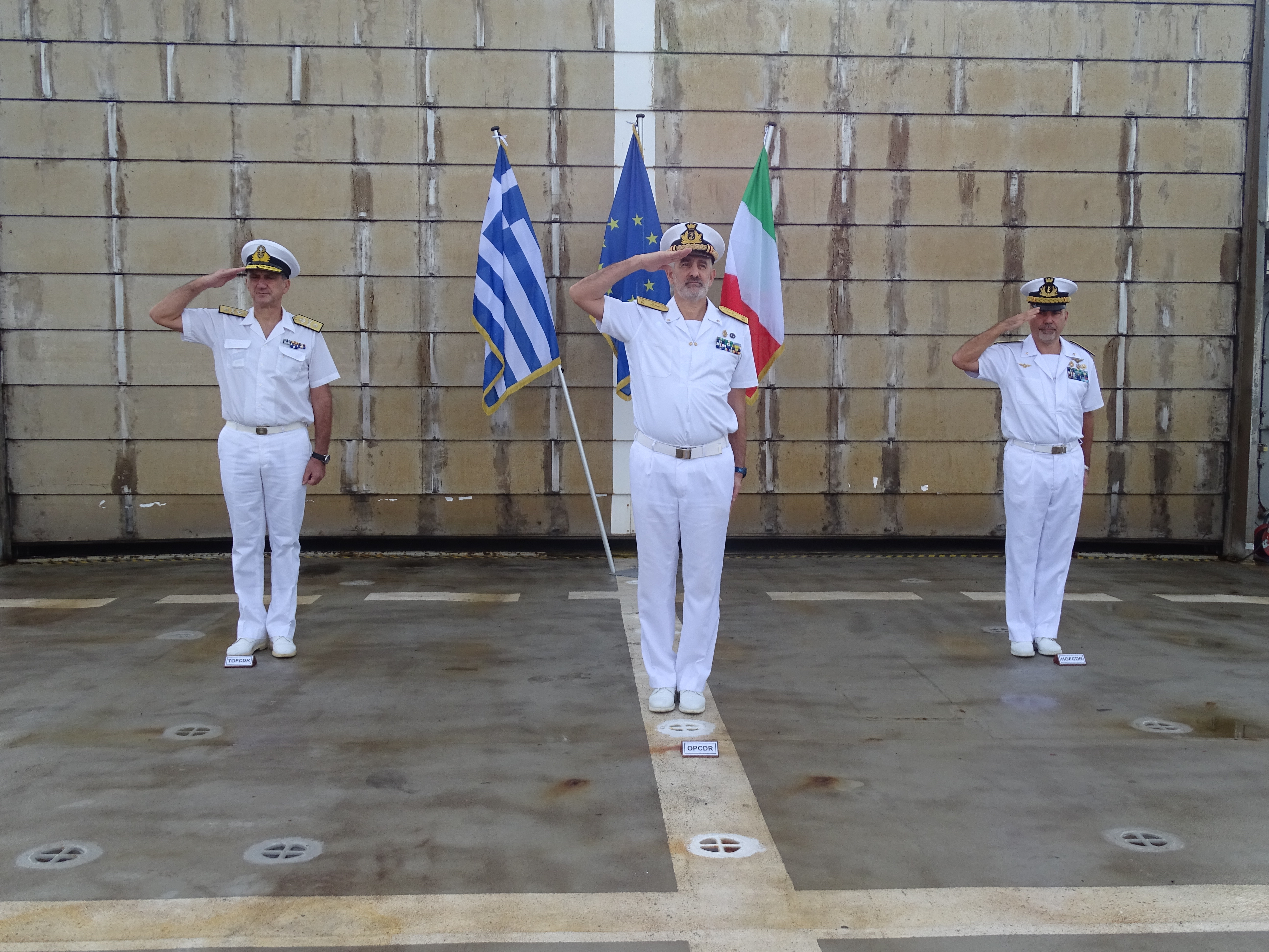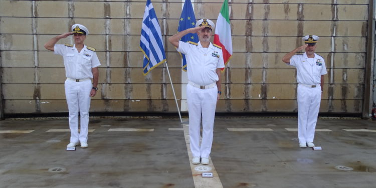 Η παράδοση καθηκόντων διοικητού εν πλω της επιχείρησης IRINI από τον Ιταλό υποναύαρχο Fabrizio Rutteri στον αρχιπλοίαρχο Στυλιανό Δημόπουλο, παρουσία του Ιταλού διοικητή της επιχείρησης IRINI υποναυάρχου Stefano Turchetto πραγματοποιήθηκε την 1η Οκτωβρίου στη ναυτική βάση Τάραντα.