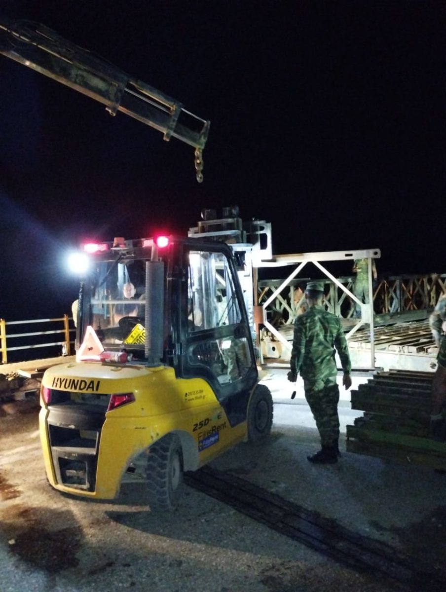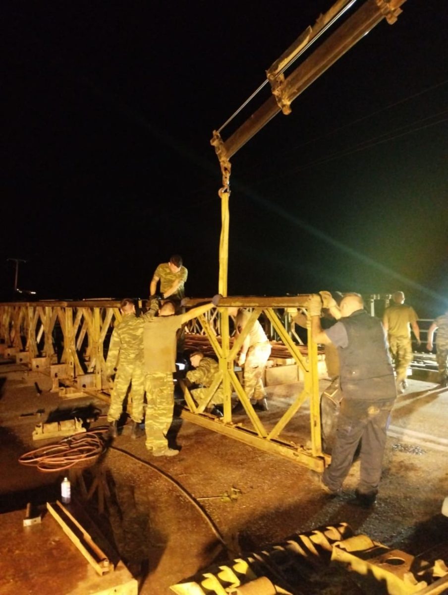 Δεν έχουν τέλος οι δύσκολες αποστολές που εκτελούν τα μέσα και το προσωπικό των Ενόπλων Δυνάμεων για την αντιμετώπιση της κακοκαιρίας Daniel, ενώ νέα πλάνα δόθηκαν στην δημοσιότητα από τον απεγκλωβισμό 9 ατόμων στον Παλαμά Καρδίτσας με ελικόπτερο τύπου Super Puma της Πολεμικής Αεροπορίας, καθώς επίσης και φωτογραφίες από την κατασκευή γέφυρας Belley στα Καλά Νερά, κατά τη διάρκεια της νύχτας.