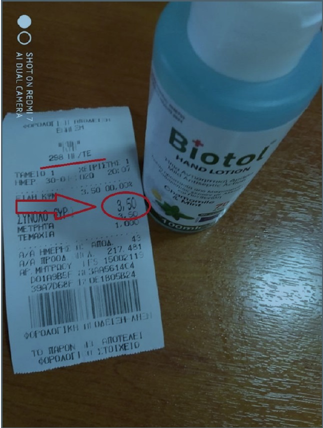 Μετά λύπης μας σας γνωρίζουμε ότι σε ΚΨΜ Μονάδος και συγκεκριμένα στο ΚΨΜ του 298 Μ/Κ ΤΕ στο Ηραίο της Σάμου, πωλείται αντισηπτικό διάλυμα σε μπουκαλάκι των 100 ml, αντί του ποσού των τριών ευρώ και πενήντα λεπτών (3,50 €).