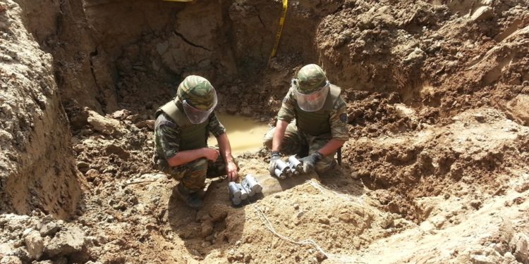 Στιγμιότυπα από εύρεση – καταστροφή βόμβας 250 κιλών, γερμανικής προέλευσης Β΄ Παγκοσμίου Πολέμου, από κλιμάκιο του ΤΕΝΞ (Τάγμα Εκκαθέρισης Ναρκοπεδίων Ξηράς) κατά την διάρκεια των εργασιών στον Κρατικό Αερολιμένα Θεσσαλονίκης «Μακεδονία».