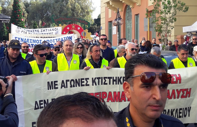 Οι ε.ε. και ε.α. στελέχη Ενόπλων Δυνάμεων και Σωμάτων Ασφαλείας του νησιού αρχικά συγκεντρώθηκαν μπροστά από την Περιφέρεια Κρήτης και στη συνέχεια πραγματοποίησαν πορεία στο κέντρο της πόλης διαμαρτυρόμενοι για τη συνεχή αφαίμαξη μισθών και συντάξεων.