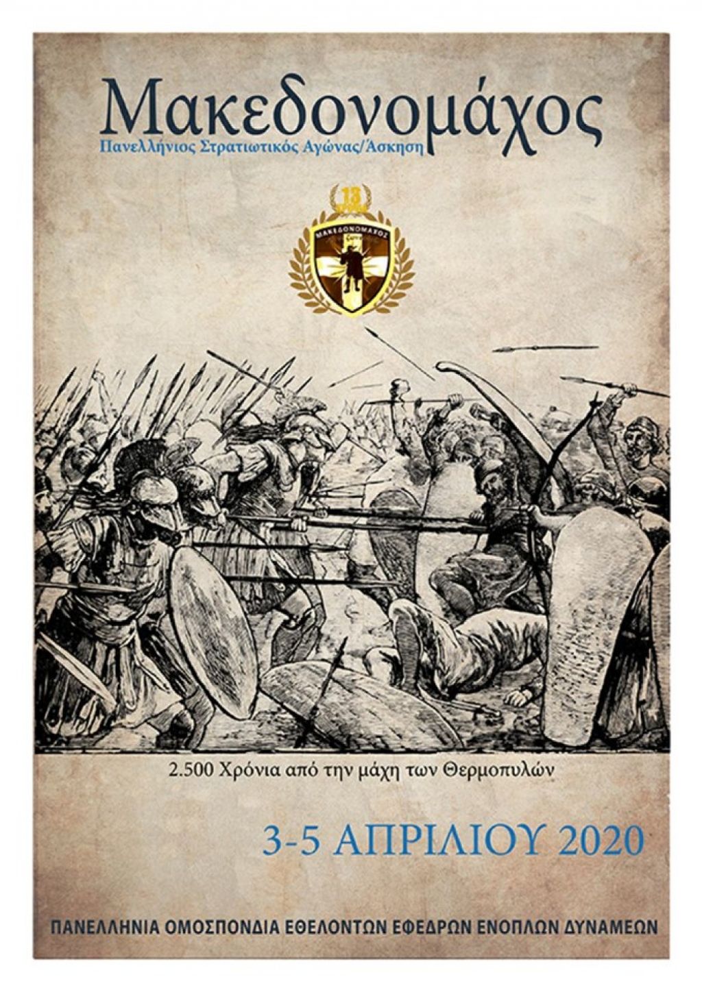 Καλούνται οι Έφεδροι Αξιωματικοί Υπαξιωματικοί και Οπλίτες να συμμετάσχουν στην διαγωνιστική άσκηση «ΜΑΚΕΔΟΝΟΜΑΧΟΣ 2020» που θα διεξαχθεί από τις 3 έως 5 Απριλίου 2020 ,ο τόπος και οι λεπτομέρειες θα ανακοινωθούν σύντομα.