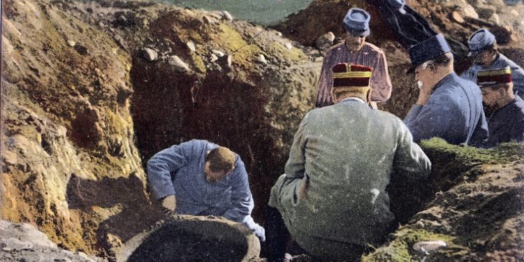 Στο πλαίσιο της εκτέλεσης στρατιωτικών έργων υποδομής, όπως η ισοπέδωση εκτάσεων για την εγκατάσταση στρατοπέδων και δρόμων επικοινωνίας ή η κατασκευή πολυβολείων και χαρακωμάτων, αρκετές φορές αποκαλύπτονταν -και συχνά καταστρέφονταν- κατάλοιπα αρχαίων οικιστικών και ταφικών συνόλων.