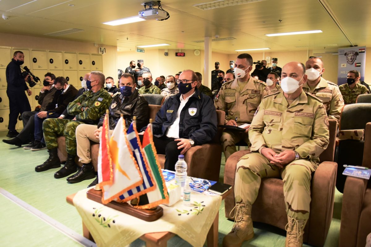 «Παρακολουθήσαμε για αρκετές ώρες την μεγάλη Στρατιωτική Άσκηση «ΜΕΔΟΥΣΑ 2021» με την συμμετοχή της Αιγύπτου, της Κύπρου, των Ηνωμένων Αραβικών Εμιράτων και της Ελλάδας και αρκετές παρατηρήτριες χώρες μεταξύ των οποίων η Γαλλία, το Μαρόκο, η Πορτογαλία, η Σαουδική Αραβία, η Ινδία κάτι που δείχνει το αυξανόμενο διεθνές ενδιαφέρον για την Άσκηση αυτή που έχει πια μετατραπεί σε ένα πολύ μεγάλο Διεθνούς εμβέλειας όπως είπα στρατιωτικό γεγονός.