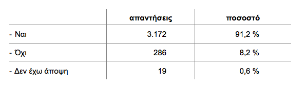 Στη δημοσκόπηση έλαβαν μέρος 3.477 άτομα και απάντησαν στο ερώτημα: Πιστεύετε ότι ο στρατιωτικός πρέπει και είναι εφικτό να μετατίθεται μετά την 25ετία υποχρεωτικά στον τόπο επιθυμίας του: